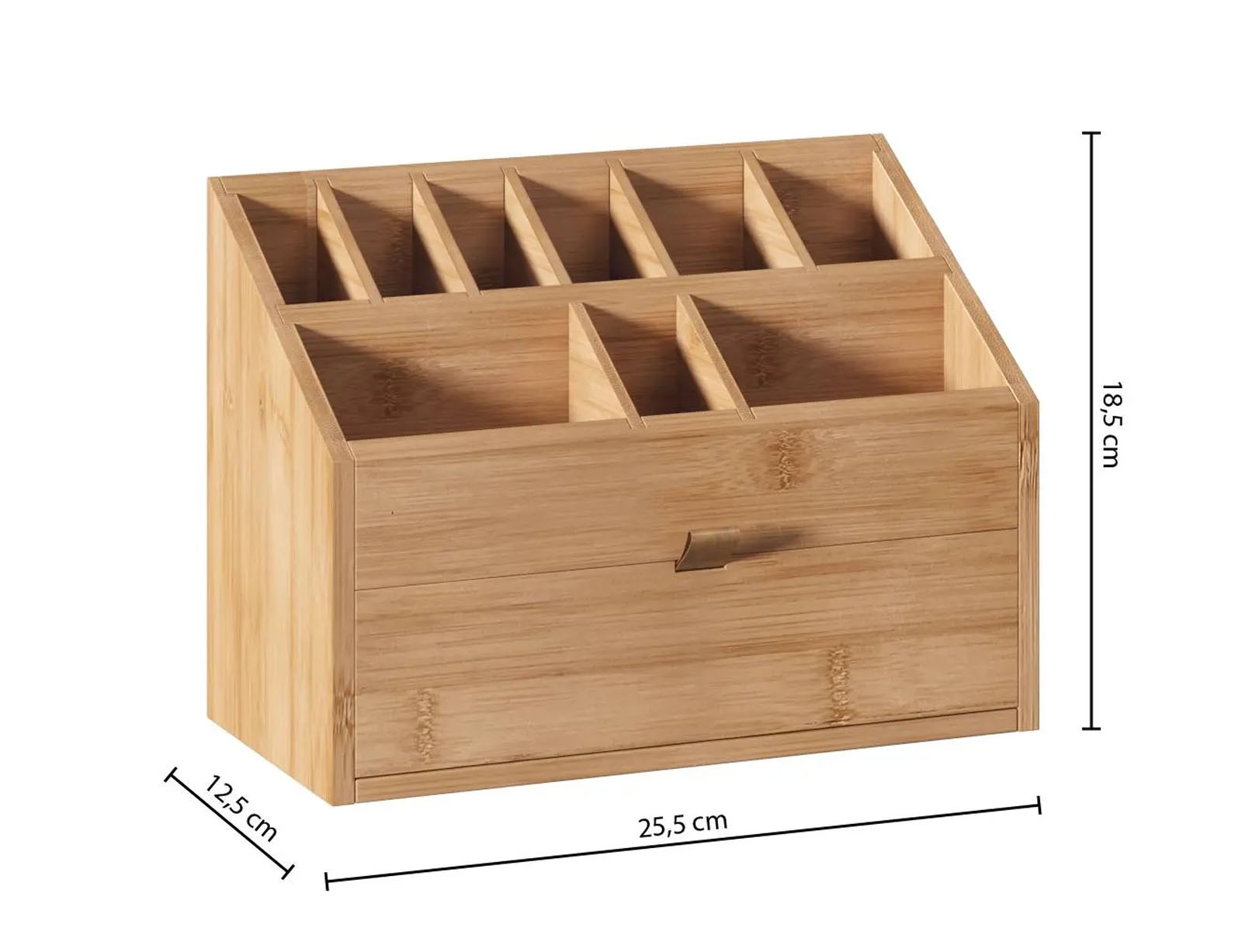 Οργανώστε το χώρο σας με το κουτί οργάνωσης από την 5five. Είναι κατασκευασμένο από ξύλο μπαμπού, ένα ανθεκτικό υλικό και ταιριάζει σε κάθε είδος διακόσμησης. Αποτελείται από 9 θέσεις διαφορετικών μεγεθών και 1 συρτάρι, για να οργανώσετε τα καλλυντικά, πινέλα ή τα αξεσουάρ περιποίησης που χρησιμοποιείτε πιο συχνά.
