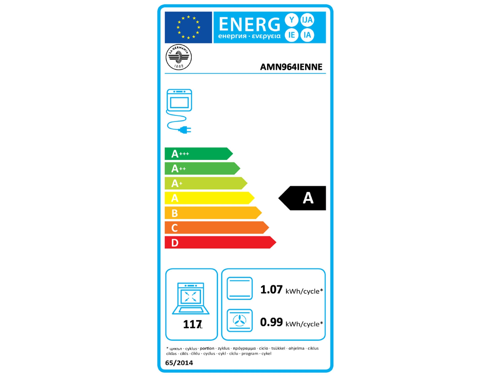 Κουζίνα La Germania AMN964IENNE με επαγωγικές εστίες, χωρητικότητα φούρνου 117L, 10 λειτουργίες ψησίματος και ενεργειακή κλάση Α