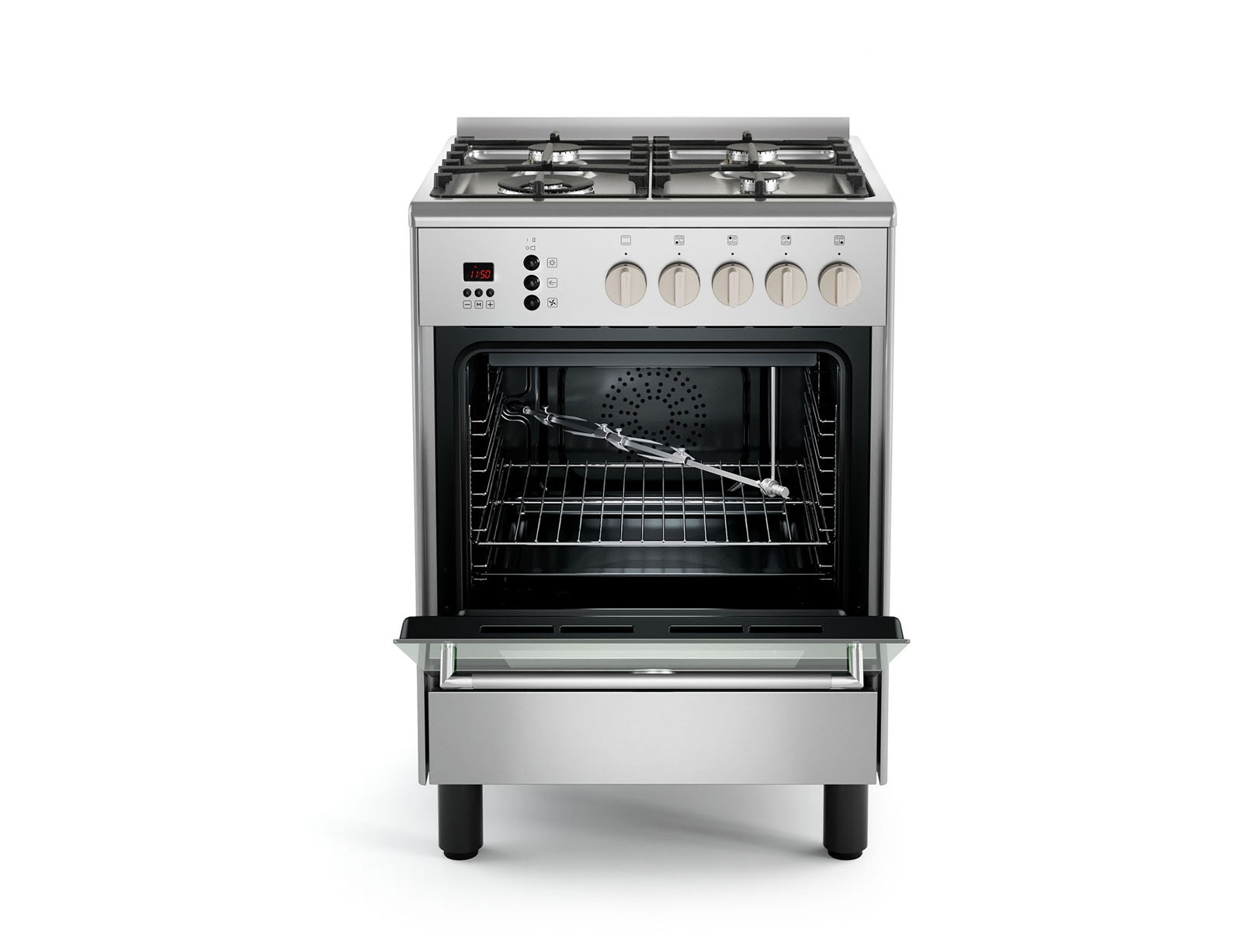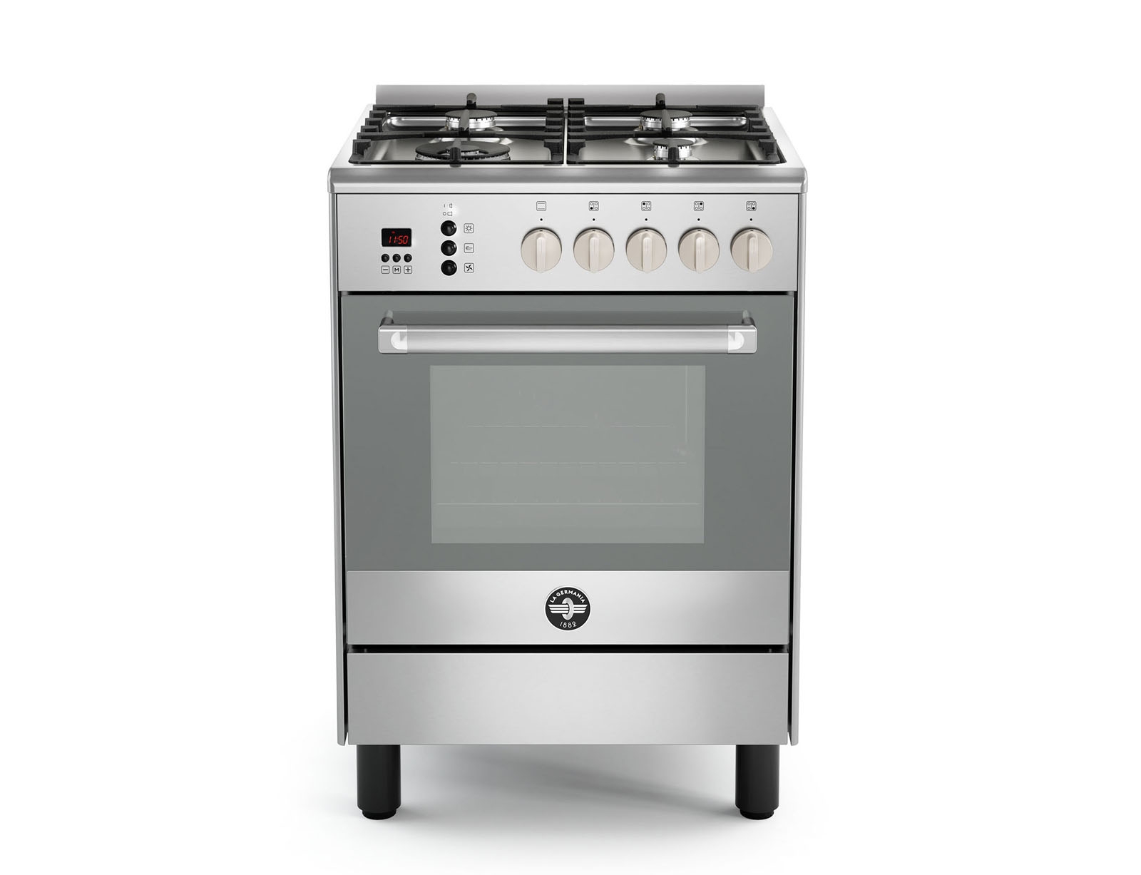 Κουζίνα La Germania CLS64C81BX με φούρνο και εστίες υγραερίου, χωρητικότητα φούρνου 60L, μηχανισμό σούβλας, 5 λειτουργίες ψησίματος και ενεργειακή κλάση Α