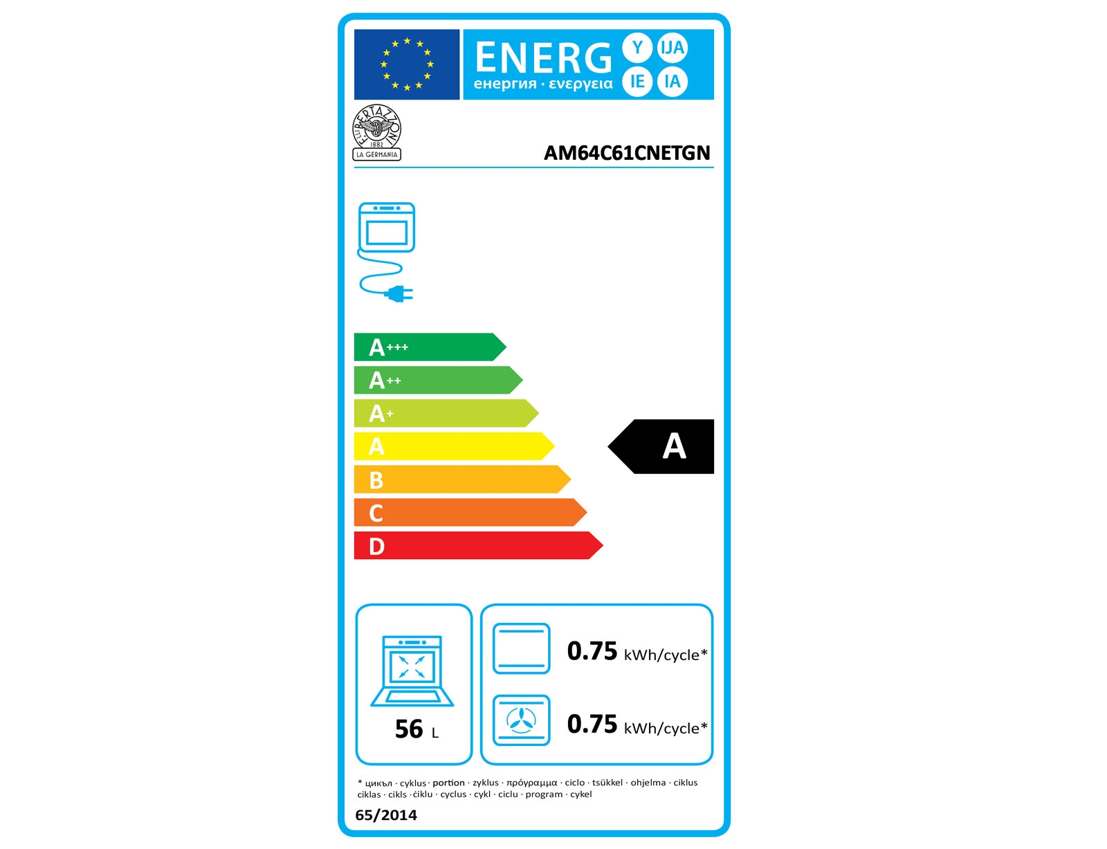 Κουζίνα La Germania AMN64C61CNET με ηλεκτρικό φούρνο και εστίες αερίου, χωρητικότητα φούρνου 56L, 7 λειτουργίες ψησίματος και ενεργειακή κλάση A