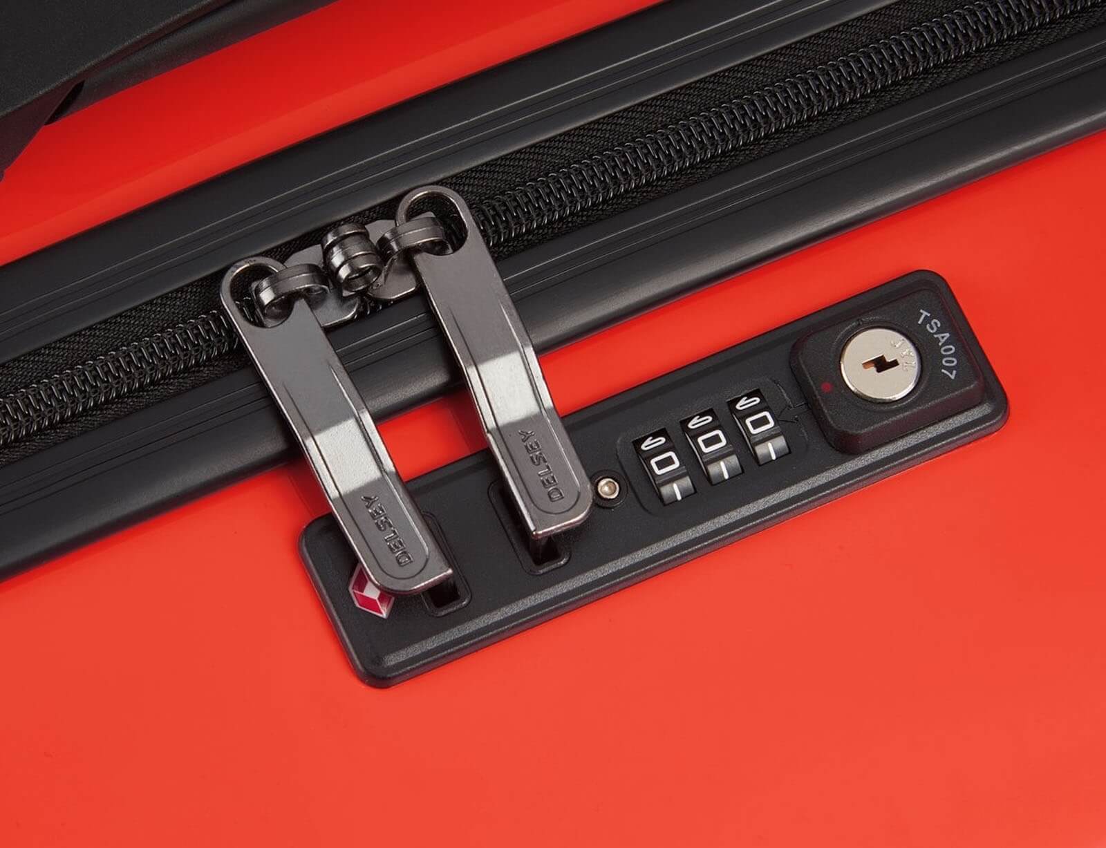 Η βαλίτσα είναι εξοπλισμένη με κλειδαριά TSA με κωδικό, προσφέροντας προσωπική ασφάλεια και παράλληλα επιτρέποντας στις αρχές ελέγχου αποσκευών (TSA) να την ανοίξουν με ειδικό κλειδί, χωρίς να προκληθεί ζημιά.