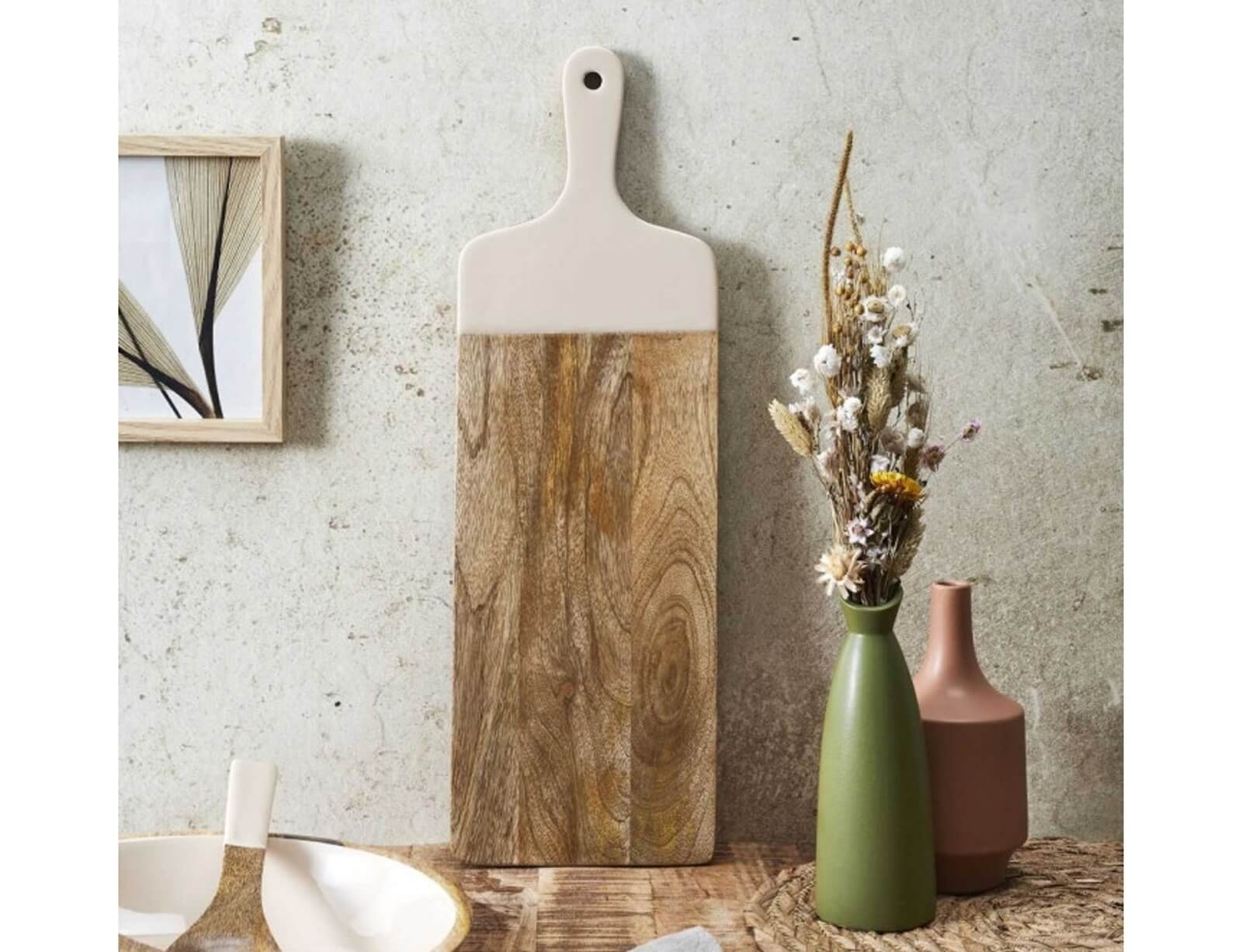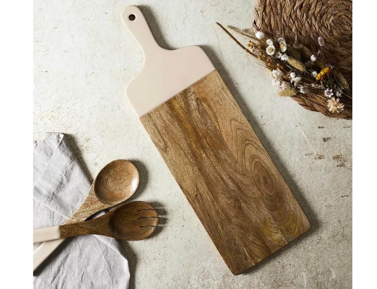 Ξύλινη επιφάνεια κοπής και σερβιρίσματος Dune Plain Home Deco Factory με λαβή, από Ξύλο Μάνγκο, 58x19x1.5cm