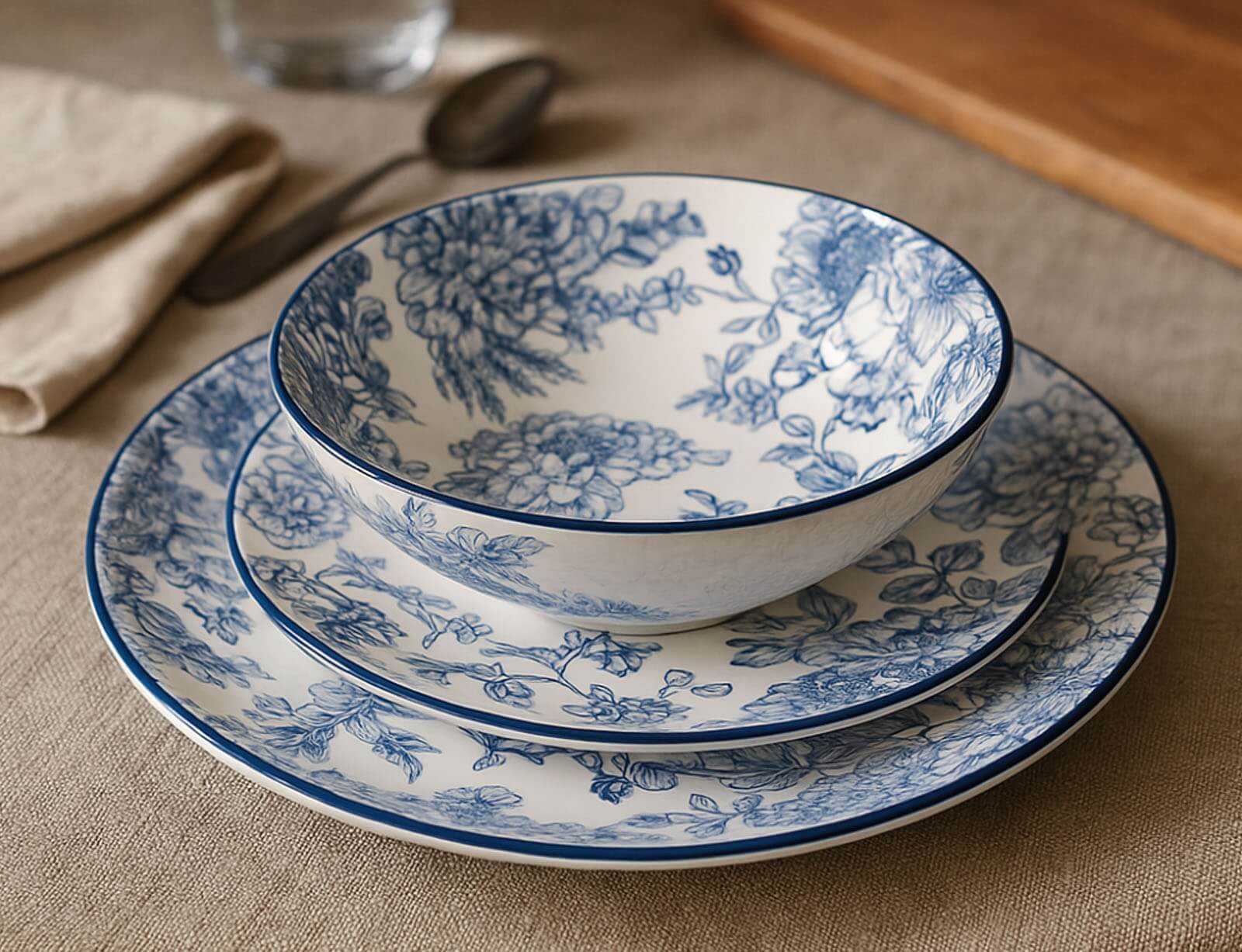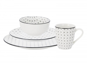Με το σετ δείπνου μπορείτε να καλύψετε τις ανάγκες σας για ένα τραπέζι για 6 άτομα. Το σετ είναι κατασκευασμένο από λευκή πορσελάνη υψηλής ποιότητας και διακοσμείται με εντυπωσιακά μπλε σχέδια που ξεχωρίζουν. Με τη σωστή φροντίδα, διατηρείται σε άριστη κατάσταση για πολλά χρόνια. Είναι κατάλληλο για πλυντήριο πιάτων και φούρνο μικροκυμάτων, προσφέροντας άνεση στην καθημερινή χρήση.