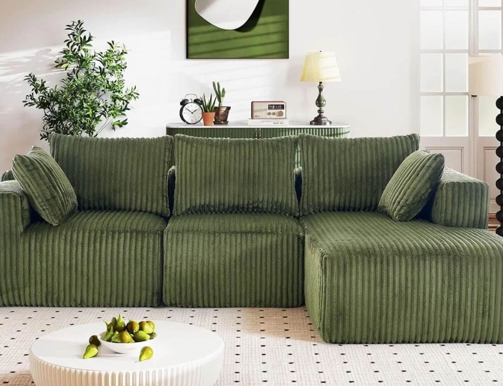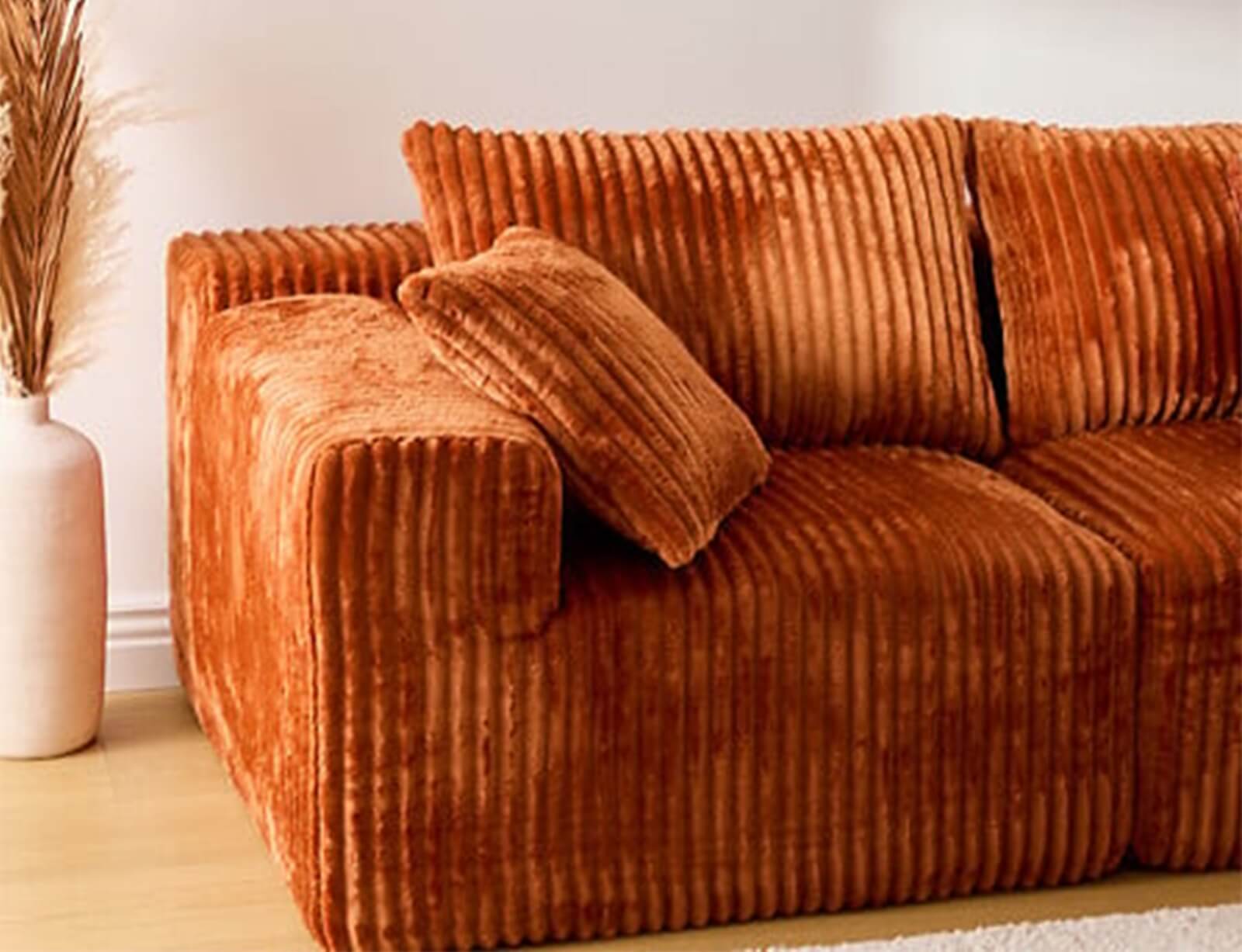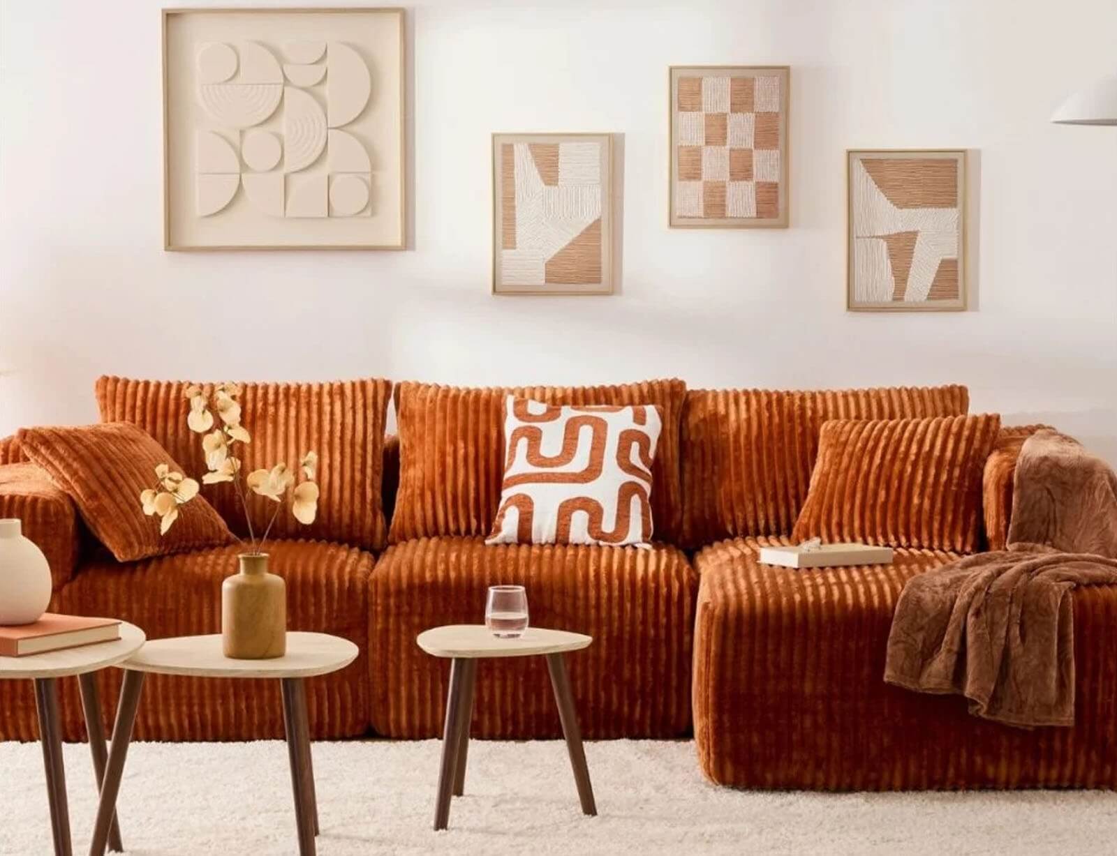 Απολαύστε στιγμές χαλάρωσης και αναβαθμίστε το χώρο σας με τον τετραθέσιο καναπέ από την Atmosphera. Ο μοντέρνος σχεδιασμός του και το κοτλέ ύφασμα σε amber απόχρωση θα δώσουν στο χώρο σας μια ρετρό και κομψή αισθητική.