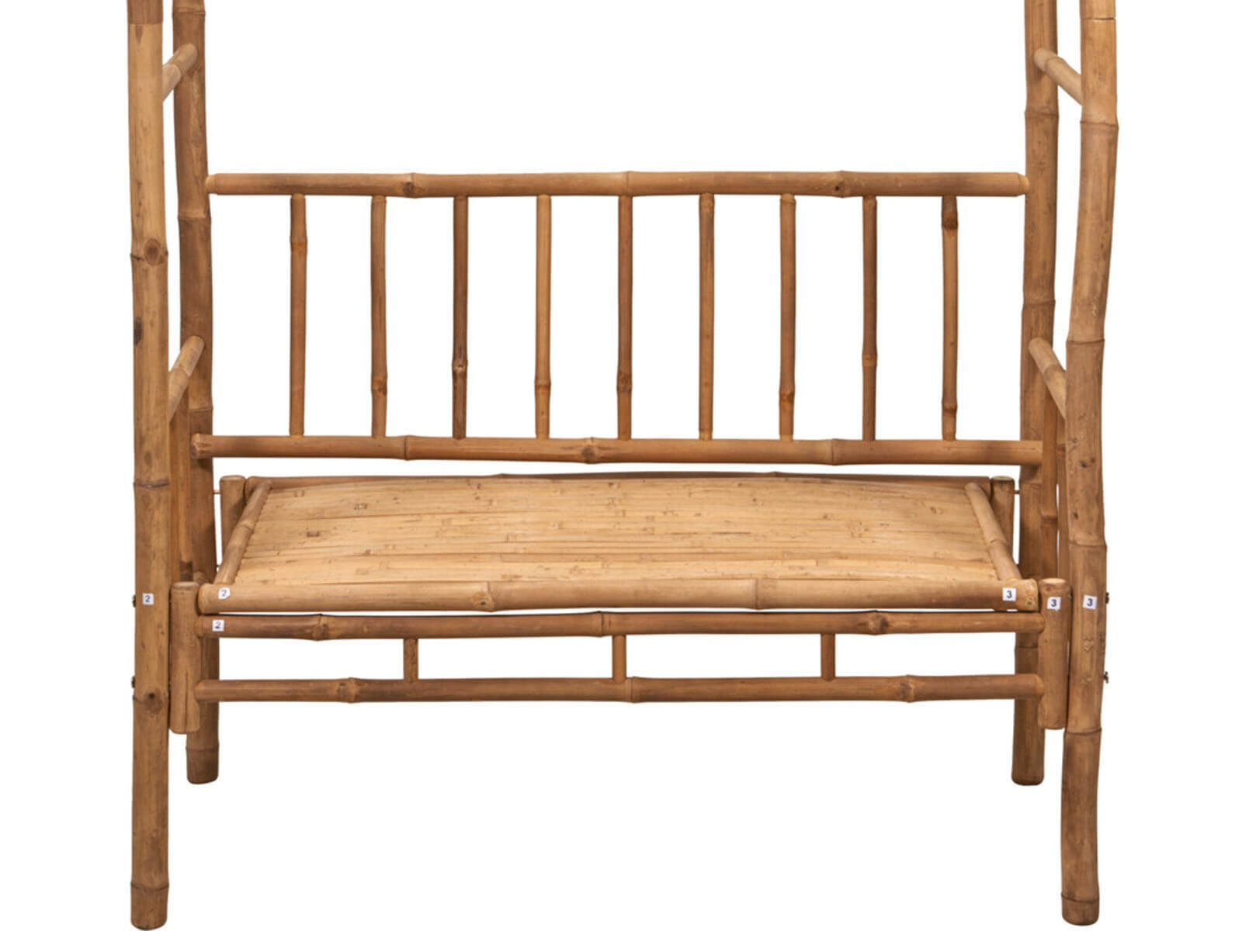 Δημιουργήστε τον απόλυτο χώρο χαλάρωσης στον κήπο ή τη βεράντα σας με το παγκάκι κήπου με πέργκολα από ξύλο bamboo. Ιδανικό για να απολαμβάνετε στιγμές ηρεμίας, να διαβάζετε ένα βιβλίο ή να περνάτε χρόνο με φίλους και οικογένεια, συνδυάζει λειτουργικότητα, ανθεκτικότητα και φυσική αισθητική. Η κατασκευή από φυσικό bamboo εξασφαλίζει σταθερότητα και ανθεκτικότητα σστις καιρικές συνθήκες, ενώ η πέργκολα μπορεί να προσφέρει σκίαση και σας δίνει τη δυνατότητα να φυτέψετε αναρριχώμενα φυτά, δημιουργώντας μια όμορφη πράσινη γωνιά.