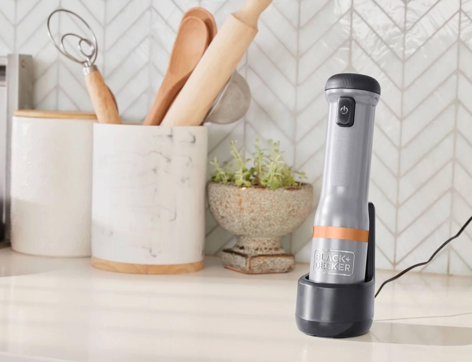 - Το ραβδομπλέντερ BLACK+DECKER διαθέτει έναν βολικό σταθμό φόρτισης με μαγνητική βάση φόρτισης.