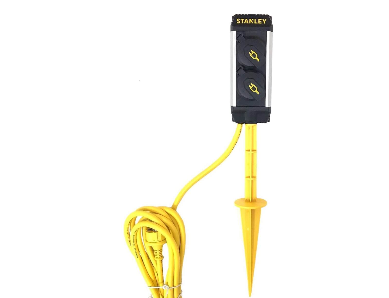 Πολύπριζο εξωτερικού χώρου 2 θέσεων Stanley, για να συνδέσετε ό,τι συσκευή θέλετε. Οι υποδοχές του είναι εξοπλισμένες με ασφάλεια για τα παιδιά και διαθέτει ακίδα γείωσης. Επίσης, διαθέτει καλώδιο 5 μέτρων για να το τοποθετήσετε όπου θέλετε.