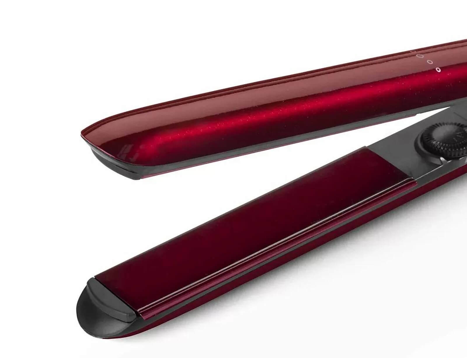 Το ισιωτικό έχει κόκκινο χρώμα και κομψό σχεδιασμό, ταιριάζοντας απόλυτα στο νεσεσέρ ομορφιάς σας. Οι πλωτές πλάκες διευκολύνουν την εφαρμογή ισιώματος, μπούκλας ή κυματισμών, προσφέροντας ευκολία και άνεση στη χρήση.