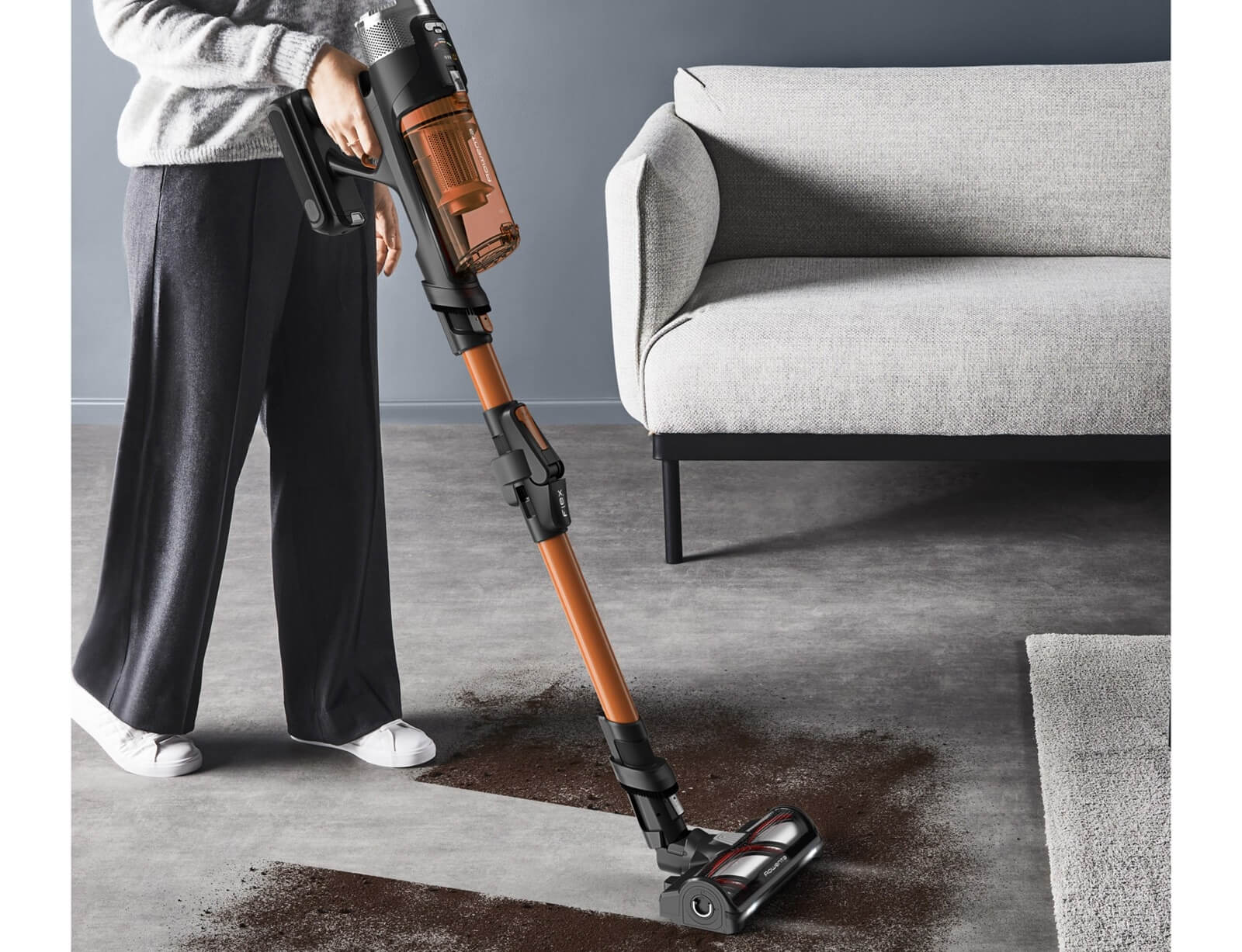 Καθαρίστε σε βάθος όλους τους τύπους δαπέδων, ακόμα και χαλιά, χάρη σε μια βούρτσα νέας γενιάς και ισχύ αναρρόφησης έως και 150 Air Watt (σε λειτουργία Boost) για την εξάλειψη των ρύπων που έχουν συσσωρευτεί.