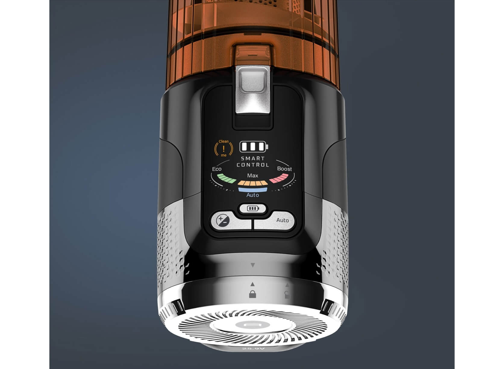 Προηγμένη τεχνολογία που περιλαμβάνει αυτόματη ρύθμιση της ισχύος αναρρόφησης ανάλογα με τον τύπο δαπέδου για εύκολο καθάρισμα και βέλτιστη χρήση της ενέργειας και της διάρκειας ζωής της μπαταρίας.