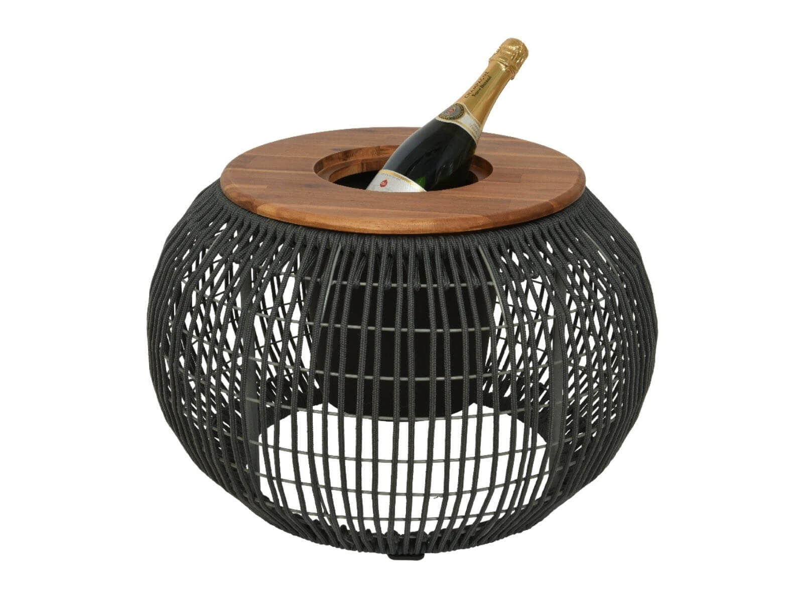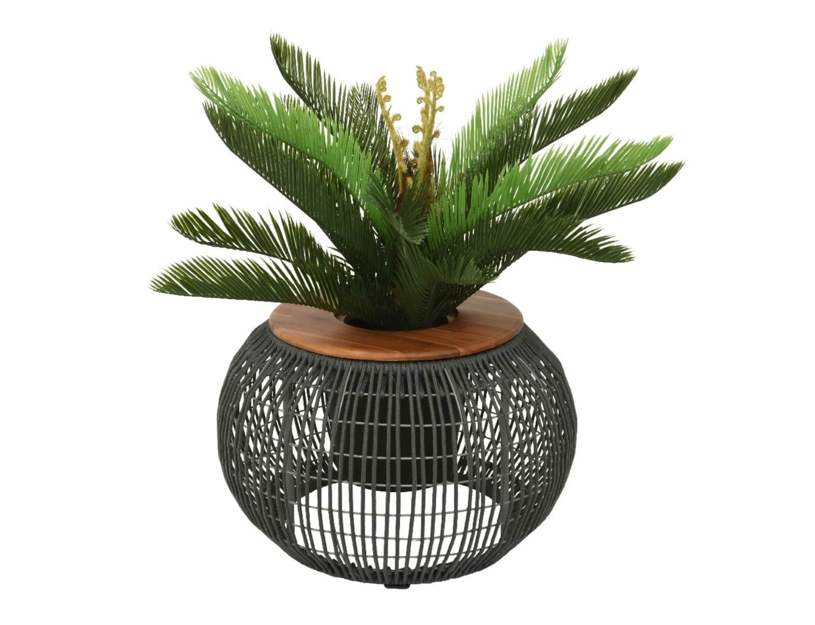 Το πολυλειτουργικό βοηθητικό τραπεζάκι Seville σε γκρι απόχρωση συνδυάζει σύγχρονη αισθητική και πρακτικότητα, αποτελώντας ιδανική επιλογή για τον εξωτερικό σας χώρο. Η επιφάνειά του είναι κατασκευασμένη από ξύλο ακακίας με πιστοποίηση FSC, προσφέροντας φυσική αντοχή και υπεύθυνη προέλευση υλικών. Ο μεταλλικός σκελετός με ηλεκτροστατική βαφή συμπληρώνεται από πυκνά πλεγμένο σχοινί πολυπροπυλενίου πάχους 6 mm, που χαρίζει ανθεκτικότητα στις καιρικές συνθήκες και μοντέρνο χαρακτήρα. Στο κέντρο διαθέτει αφαιρούμενο δοχείο πολλαπλών χρήσεων: μπορεί να χρησιμοποιηθεί ως κασπώ για φυτά ή ως ψυγείο μπουκαλιών για δροσερά ποτά — ιδανικό για χαλάρωση στο μπαλκόνι ή στον κήπο.