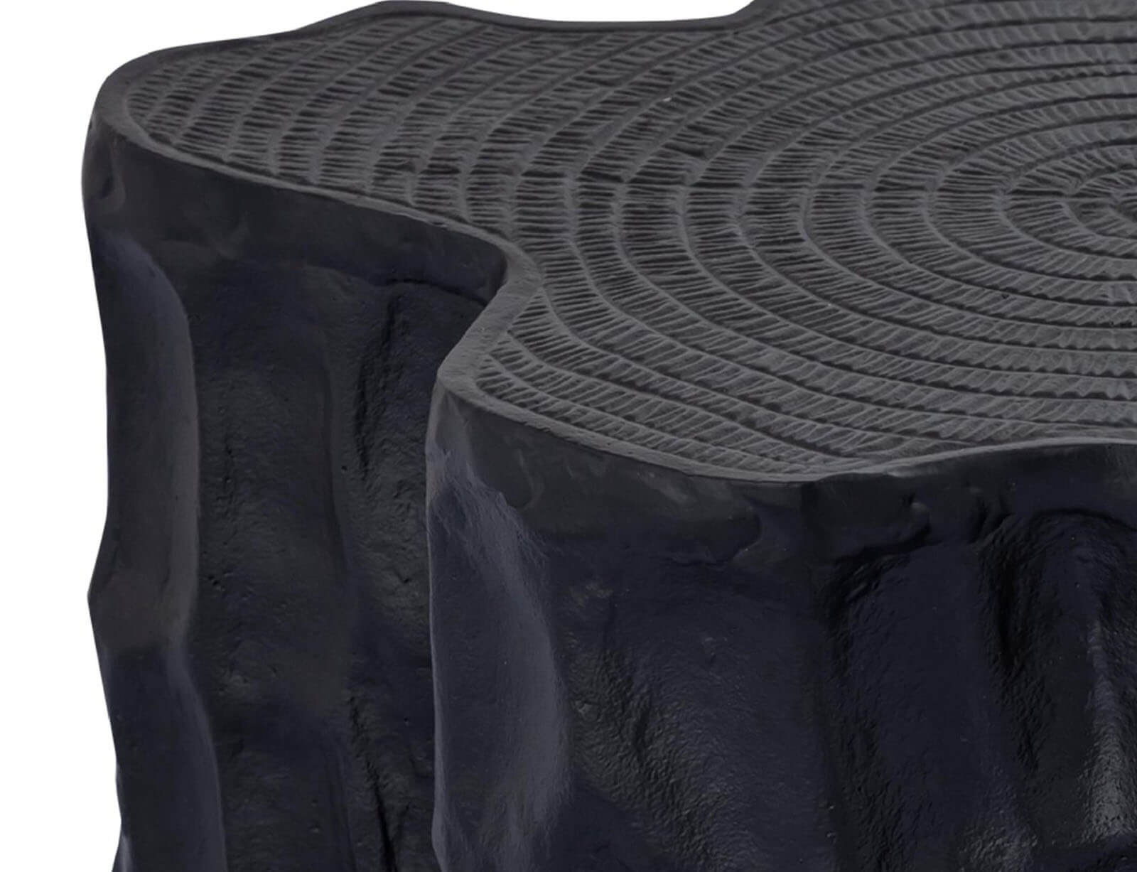 Το βοηθητικό τραπεζάκι Fennah σε σχήμα κορμού δέντρου, αποτελεί ένα ιδιαίτερο design κομμάτι που συνδυάζει τη φυσική αισθητική με τη σύγχρονη πολυτέλεια. Η ανάγλυφη επιφάνειά του, που μιμείται με λεπτομέρεια τους δακτυλίους του δέντρου, προσδίδει έντονο χαρακτήρα και μοναδική υφή, ενώ το μαύρο χρώμα του χαρίζει κομψότητα και διαχρονικό στυλ. Ιδανικό ως βοηθητικό τραπεζάκι σαλονιού, κομοδίνο ή διακοσμητικό στοιχείο, μπορεί να τοποθετηθεί τόσο σε εσωτερικούς όσο και σε εξωτερικούς χώρους, όπως βεράντα ή κήπο.