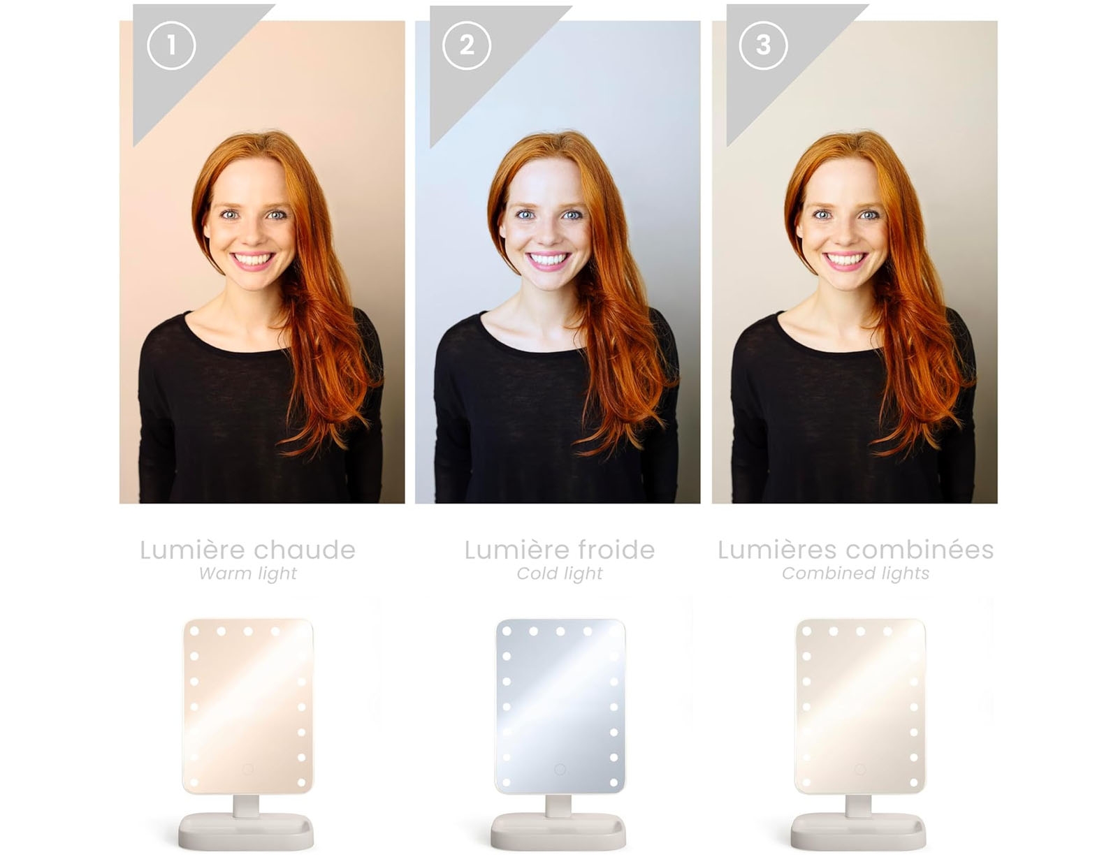 Διακοσμητικός Επιτραπέζιος Καθρέπτης Livoo DOS207 με φωτισμό LED, 3 ρυθμίσεις φωτός και διαστάσεις 56x12x46cm