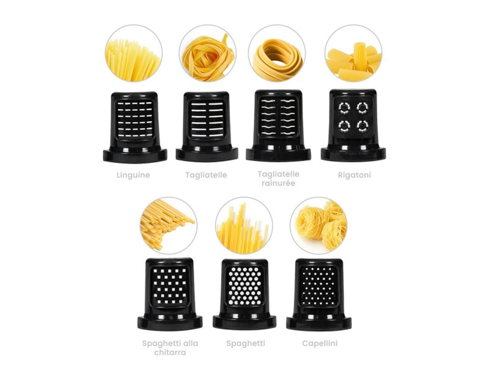 Υποστηρίζει 7 σχήματα ζυμαρικών: linguine, tagliatelle, tagliatelle με κεντρικές ραβδώσεις, rigatoni, spaghetti, spaghetti alla chitarra και capellini, προσφέροντας ποικιλία για κάθε γούστο.