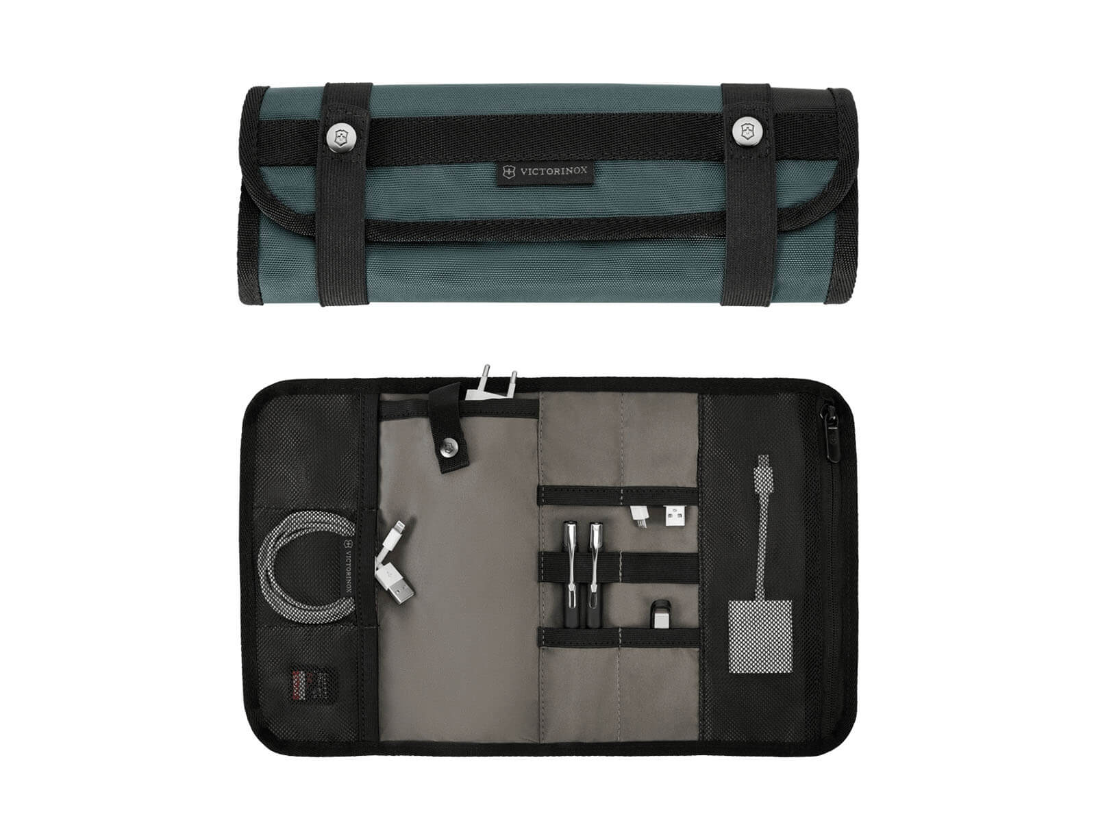 - Οργάνωση για φορτιστές, καλώδια, USB, στυλό και άλλα, κρεμιέται σε σημείο με εύκολη πρόσβαση και διπλώνει σε ένα συμπαγές τριπλό σχέδιο για χρήση χωρίς την τσάντα.