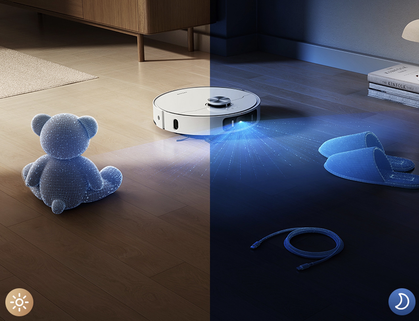 Κινείται ομαλά μέσα στο σπίτι χωρίς συγκρούσεις. Ανιχνεύει και αποφεύγει με ακρίβεια περισσότερα από 120 είδη εμποδίων, όπως καλώδια, κάλτσες και παπούτσια. Χάρη στο φως LED, μπορεί εύκολα να καθαρίσει ακόμη και περιοχές με κακό φωτισμό και σκοτεινές γωνίες.