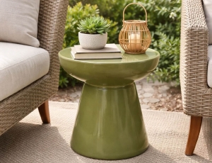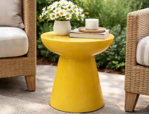 Αναβαθμίστε τον εξωτερικό σας χώρο με το βοηθητικό τραπεζάκι Talum. Ο σκαλιστός, στρογγυλεμένος σχεδιασμός και το γυαλιστερό κίτρινο φινίρισμα το καθιστούν ιδανικό τόσο για κήπο, όσο και για βεράντα ή μπαλκόνι. Κατασκευασμένο από MGO, ένα υλικό γνωστό για την αντοχή του στην υγρασία και στις καιρικές συνθήκες, το τραπεζάκι προσφέρει σταθερότητα και μεγάλη διάρκεια ζωής.