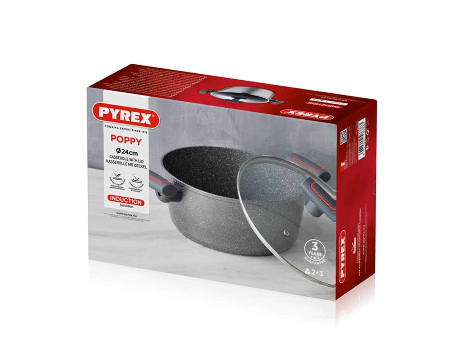 Κατσαρόλα Pyrex Poppy με καπάκι, αντικολλητική επίστρωση, διάμετρο 24cm και χωρητικότητα 4L