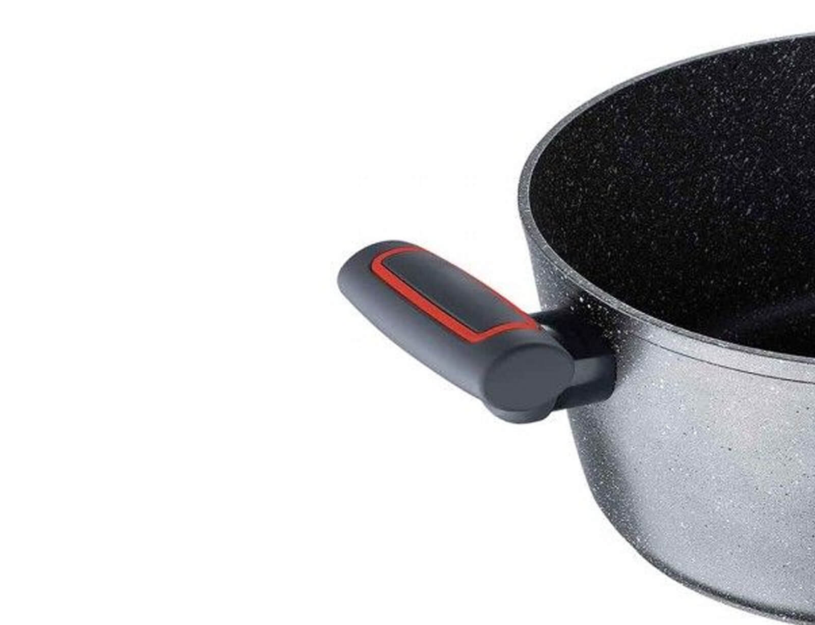Η κατσαρόλα Pyrex Poppy είναι ιδανική προσθήκη στην κουζίνα σας. Είναι κατασκευασμένη από αλουμίνιο και προσφέρει ομοιόμορφη κατανομή της θερμοκρασίας για τέλειο ψήσιμο και γρήγορο μαγείρεμα. Οι εργονομικές αντιολισθητικές λαβές διατηρούν κρύα θερμοκρασία για άνετο κράτημα χωρίς τραυματισμούς. Eίναι ανθεκτική στα γδαρσίματα και εξασφαλίζεται μεγαλύτερη διάρκεια ζωής. Κατάλληλη για εστίες αλογόνου, ηλεκτρικές εστίες, κεραμικές, επαγωγικές και εστίες υγραερίου. Για να διατηρηθεί η αντικολλητική επίστρωση είναι προτιμότερο να αφήνετε το σκεύος να κρυώσει πριν το καθαρίσετε και να αποφεύγετε το σύρμα καθαρισμού. Προτιμήστε ένα μαλακό, συνθετικό σφουγγάρι.
