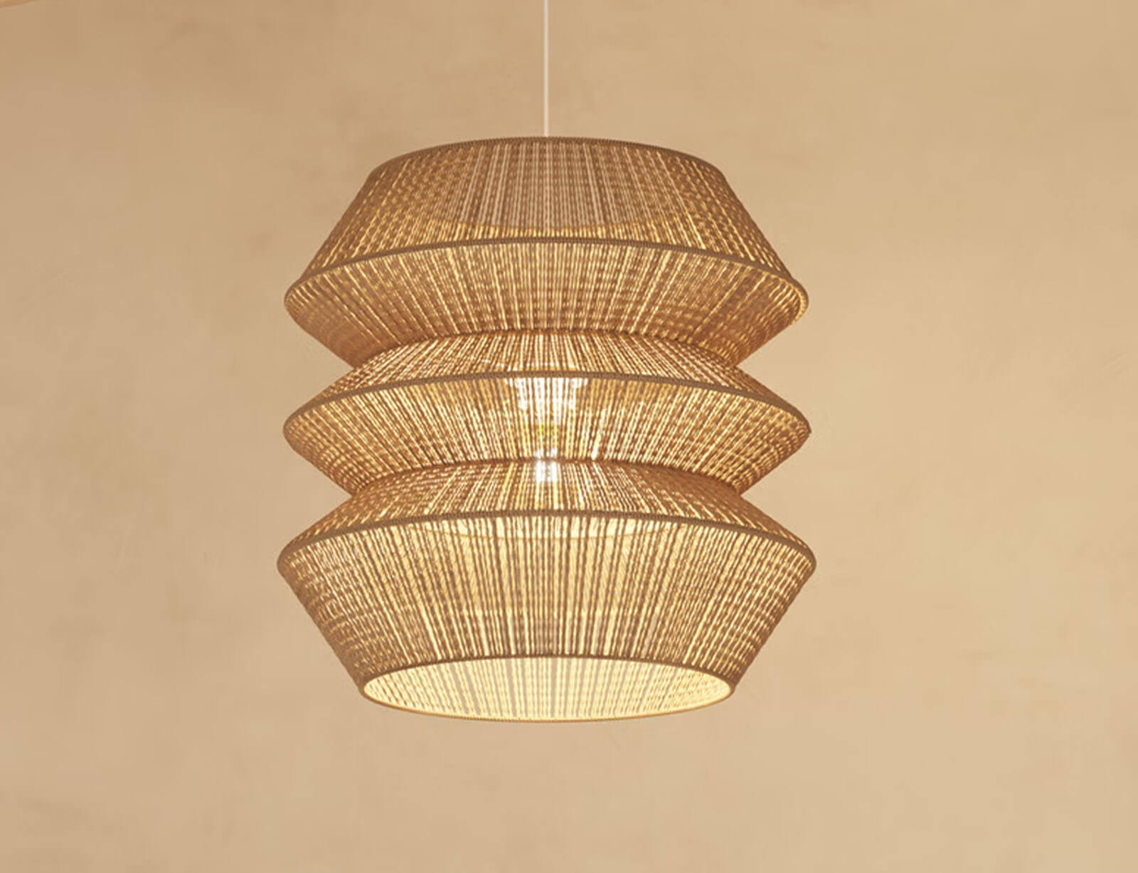 Μονόφωτο κρεμαστό φωτιστικό σε μοντέρνο boho στυλ, κατασκευασμένο από μέταλλο με ψάθινη όψη, ιδανικό για την τραπεζαρία, το σαλόνι ή το υπνοδωμάτιο, δημιουργώντας μια μοναδική ατμόσφαιρα. Ο φυσικός σχεδιασμός κάνει τη λάμπα να προσθέτει ζεστασιά και άνεση στο δωμάτιο. Το διαθέσιμο καλώδιο είναι κατασκευασμένο από PVC με μήκος 90εκ., παρέχοντας την δυνατότητα αυξομείωσης του συνολικού ύψους του φωτιστικού.