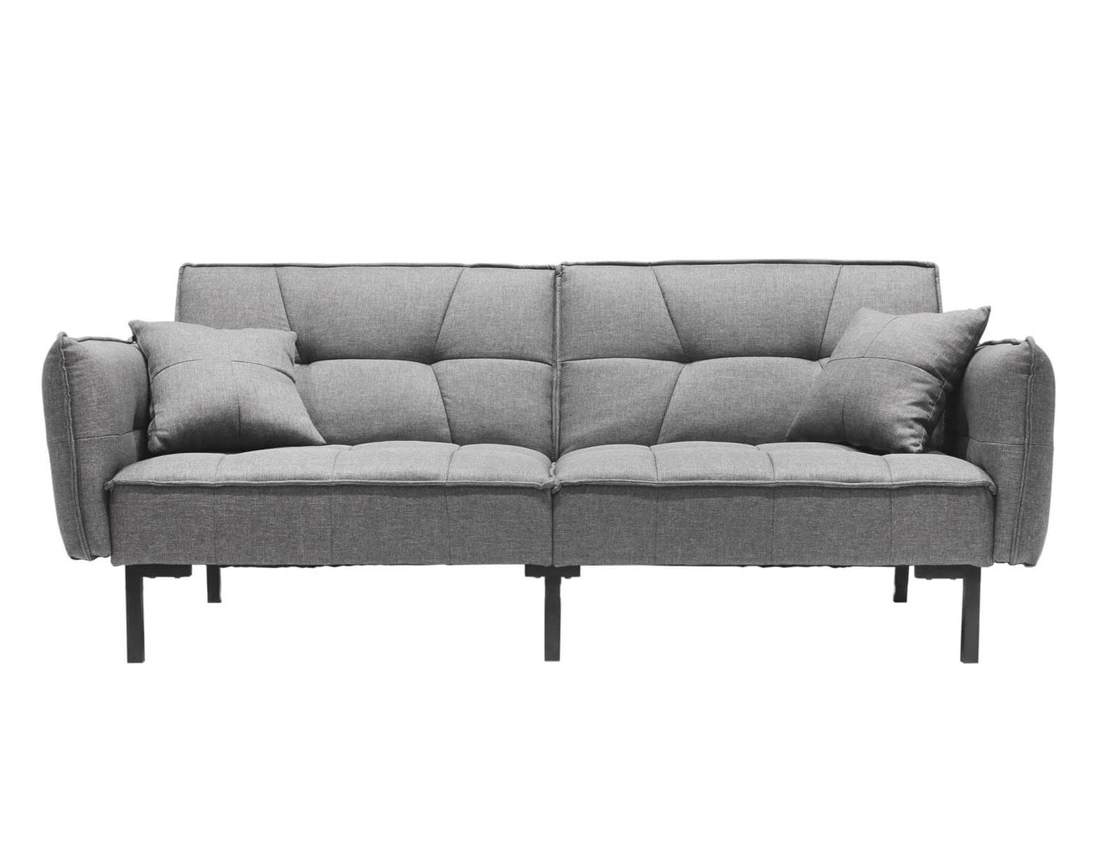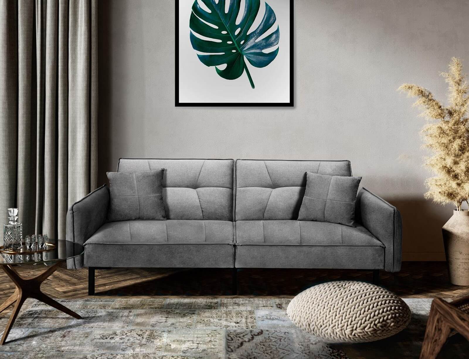 Απολαύστε στιγμές χαλάρωσης και αναβαθμίστε το χώρο σας με το τριθέσιο καναπέ από τη Ηome Deco Factory. Ο μοντέρνος σχεδιασμός του και το ύφασμα σε γκρι απόχρωση θα δώσουν στο χώρο σας μια κομψή αισθητική. Ο καναπές μετατρέπεται σε λίγα δευτερόλεπτα σε ένα πρακτικό και άνετο κρεβάτι. Ο μεταλλικός σκελετός παρέχει στήριξη και σταθερότητα, ενώ τα μαξιλάρια διαθέτουν πλούσια επένδυση για περισσότερη άνεση.