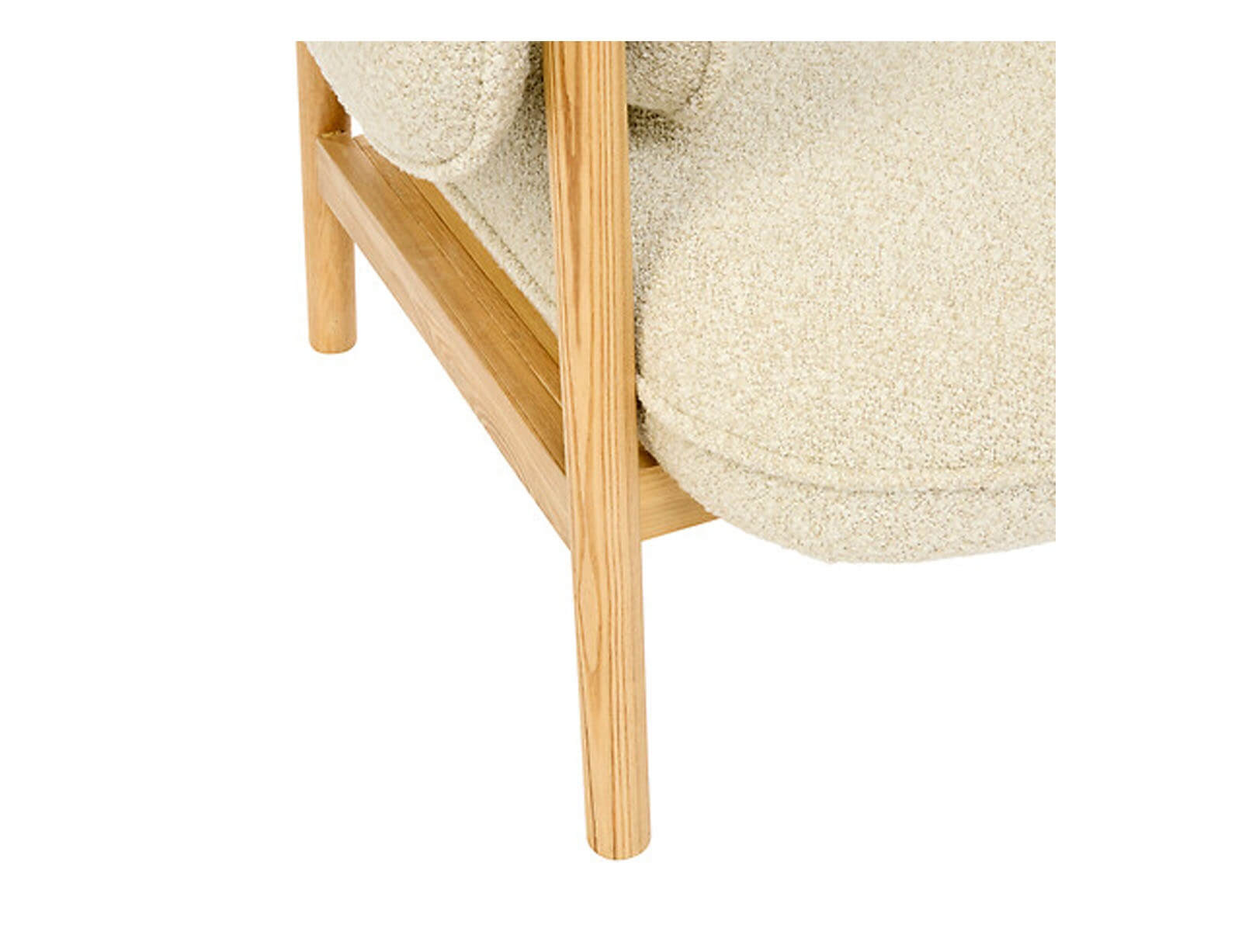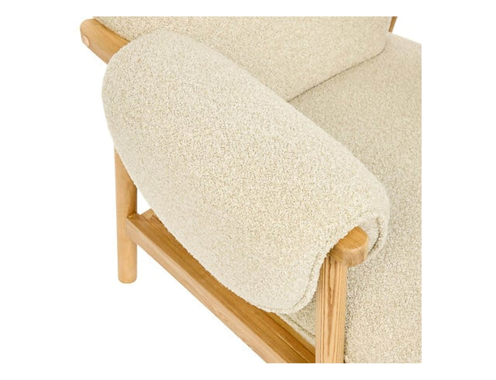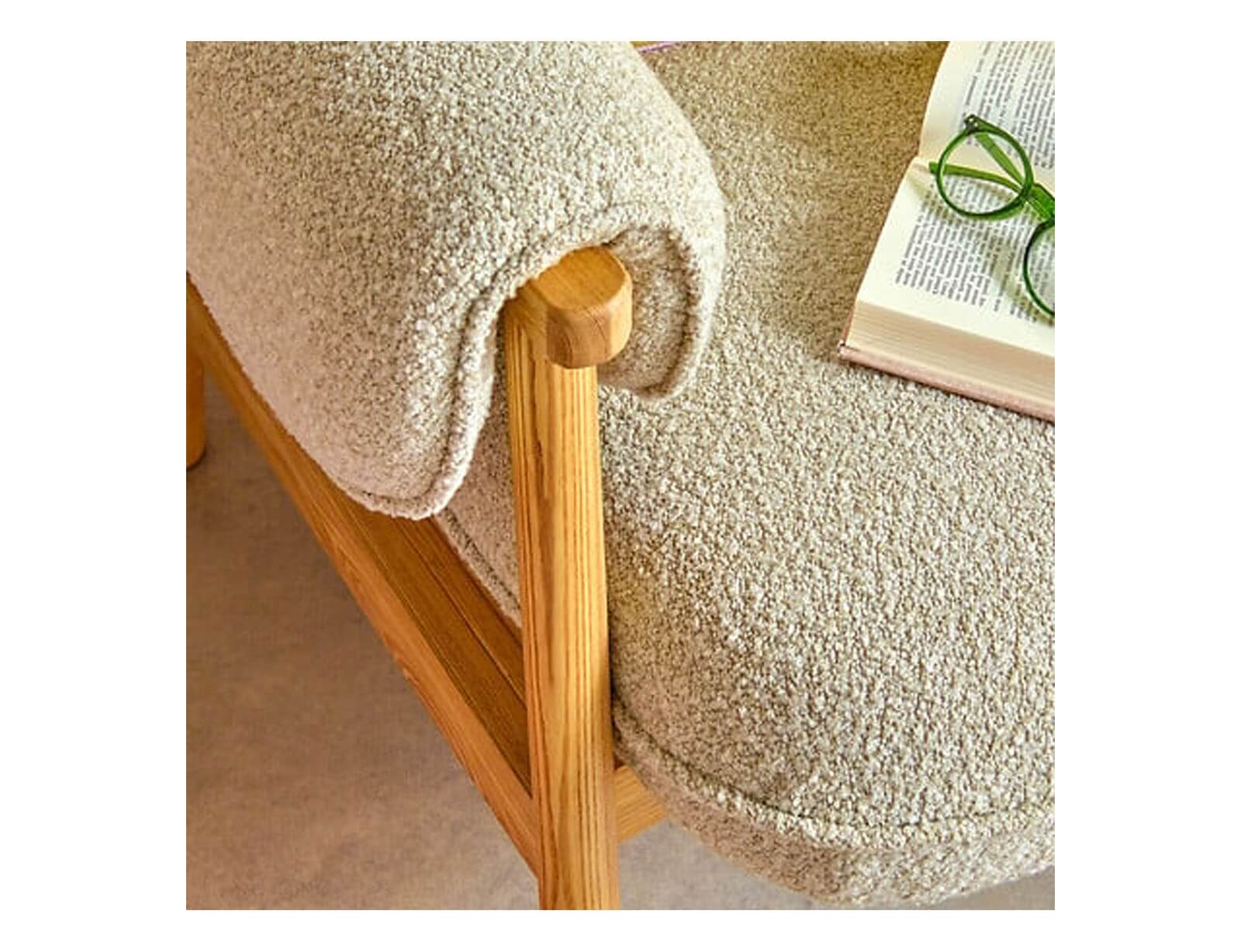 Η πολυθρόνα αυτή συνδυάζει άνεση και σύγχρονη αισθητική, αποτελώντας ιδανική επιλογή για το σαλόνι, το καθιστικό ή έναν χώρο χαλάρωσης. Διαθέτει απαλή επένδυση με υφή boucle, που προσφέρει ζεστή και φιλόξενη αίσθηση, ενώ το ξύλινο πλαίσιο προσδίδει φυσικό χαρακτήρα και σταθερότητα. Τα αναπαυτικά μπράτσα και το εργονομικό κάθισμα εξασφαλίζουν άνετη στήριξη, καθιστώντας την ιδανική για καθημερινή χρήση. Ο διαχρονικός σχεδιασμός της ταιριάζει εύκολα σε μοντέρνα, minimal ή φυσικά στυλ διακόσμησης.