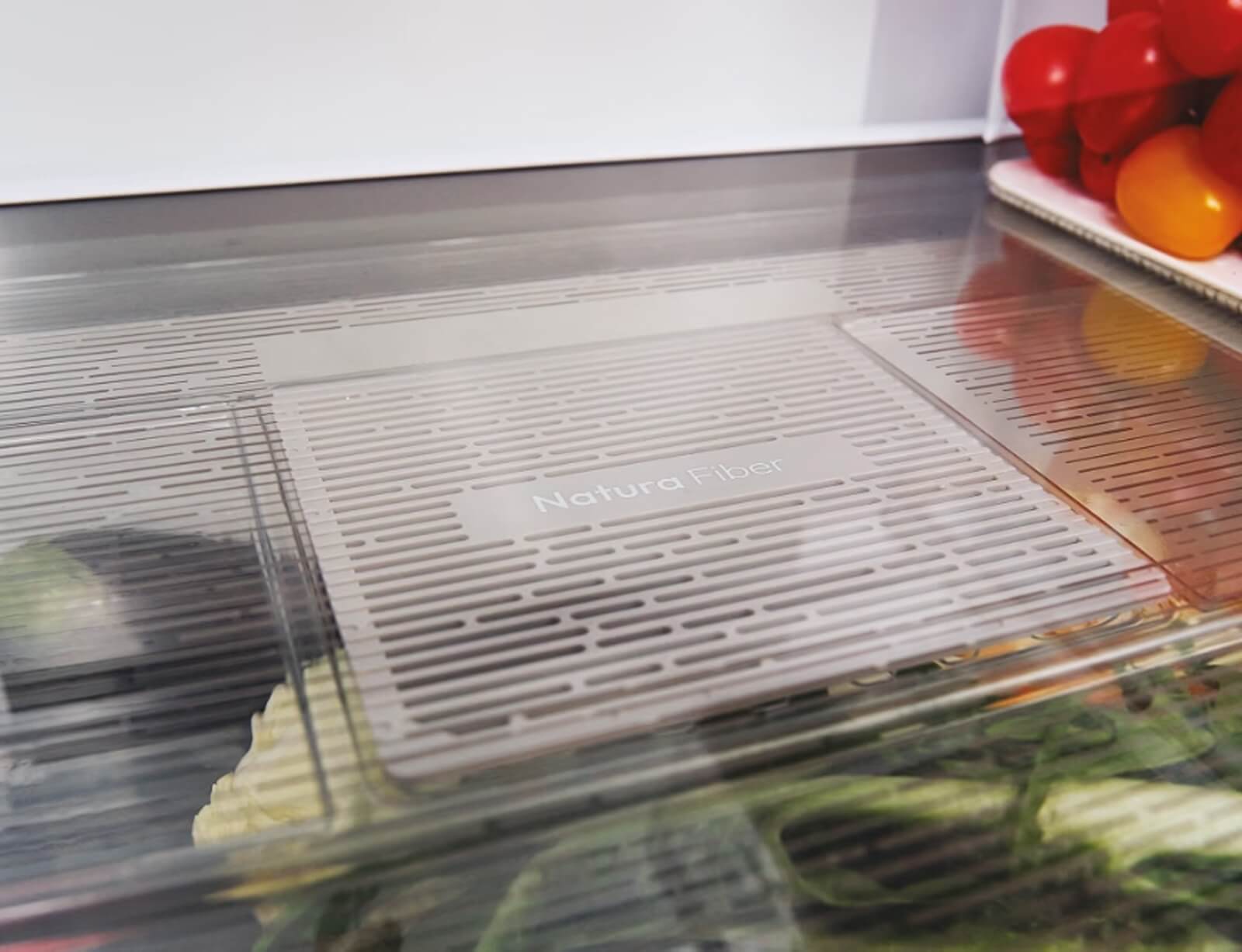 Αποθηκεύστε φρούτα και λαχανικά ανενόχλητα στην αυτορυθμιζόμενη ζώνη υγρασίας και διατηρήστε ιδανικές συνθήκες με το Natura Fiber, το οποίο εξασφαλίζει αυτόματα το ιδανικό επίπεδο υγρασίας.