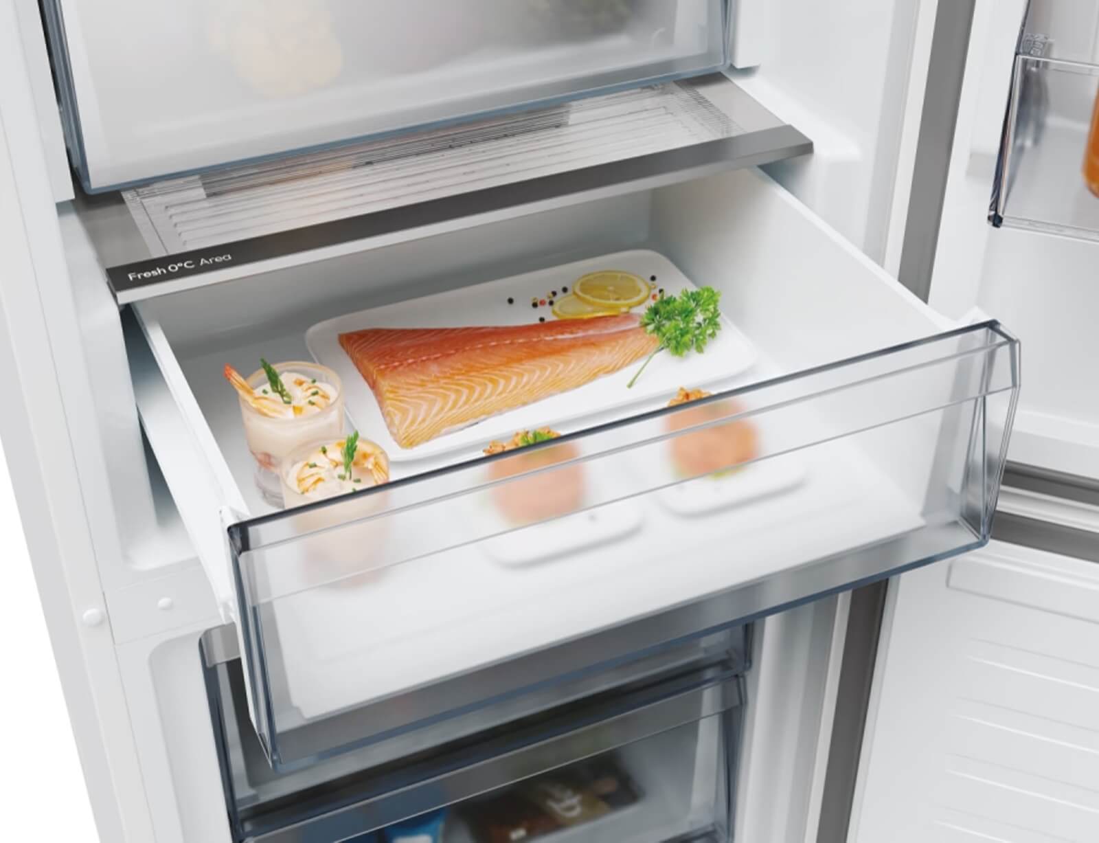 Η ζώνη Fresh 0°C σάς επιτρέπει να ρυθμίζετε τη θερμοκρασία του συρταριού ανάλογα με τις ανάγκες σας. Η ρύθμιση 0°C είναι ιδανική για ψάρια και κρέας, ενώ η απενεργοποίηση αυτής της λειτουργίας σάς παρέχει επιπλέον χώρο για την αποφυγή μόλυνσης και μεγαλύτερη ευελιξία στην αποθήκευση τροφίμων.