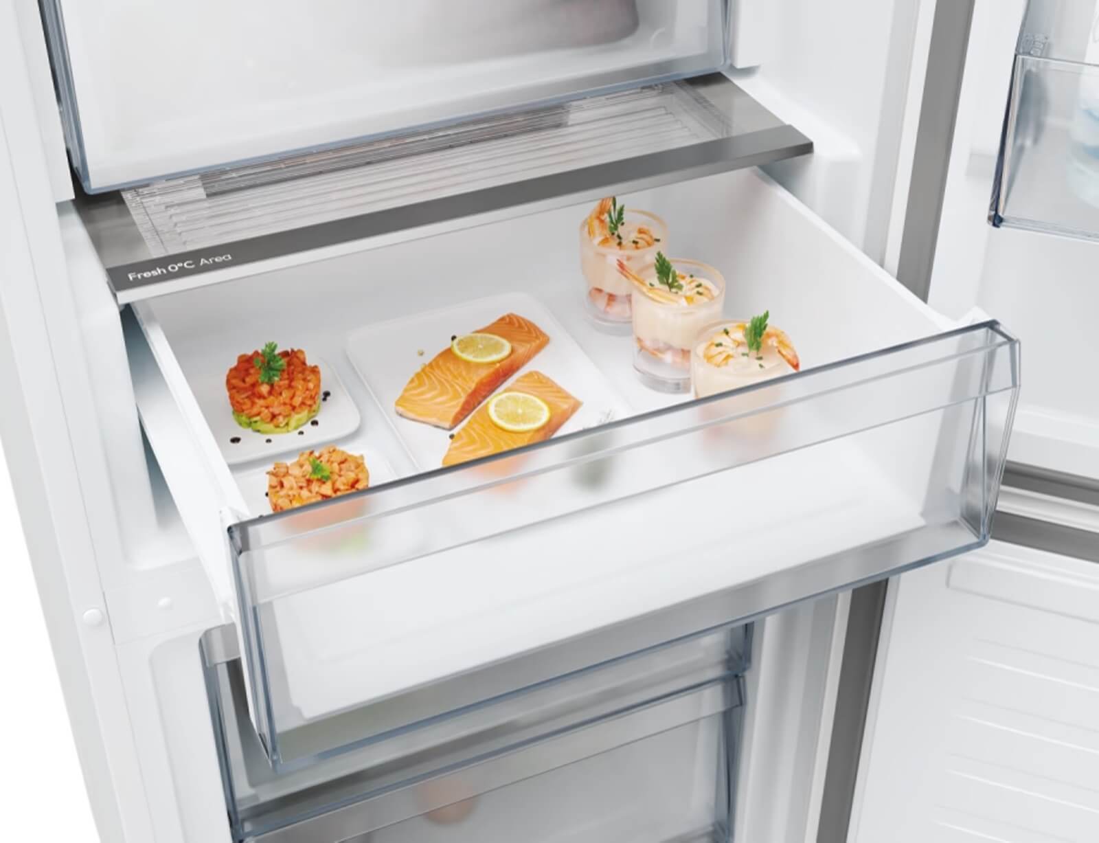 Η ζώνη Fresh 0°C σάς επιτρέπει να ρυθμίζετε τη θερμοκρασία του συρταριού ανάλογα με τις ανάγκες σας. Η ρύθμιση 0°C είναι ιδανική για ψάρια και κρέας, ενώ η απενεργοποίηση αυτής της λειτουργίας σας παρέχει επιπλέον χώρο για την αποφυγή μόλυνσης και μεγαλύτερη ευελιξία στην αποθήκευση τροφίμων.