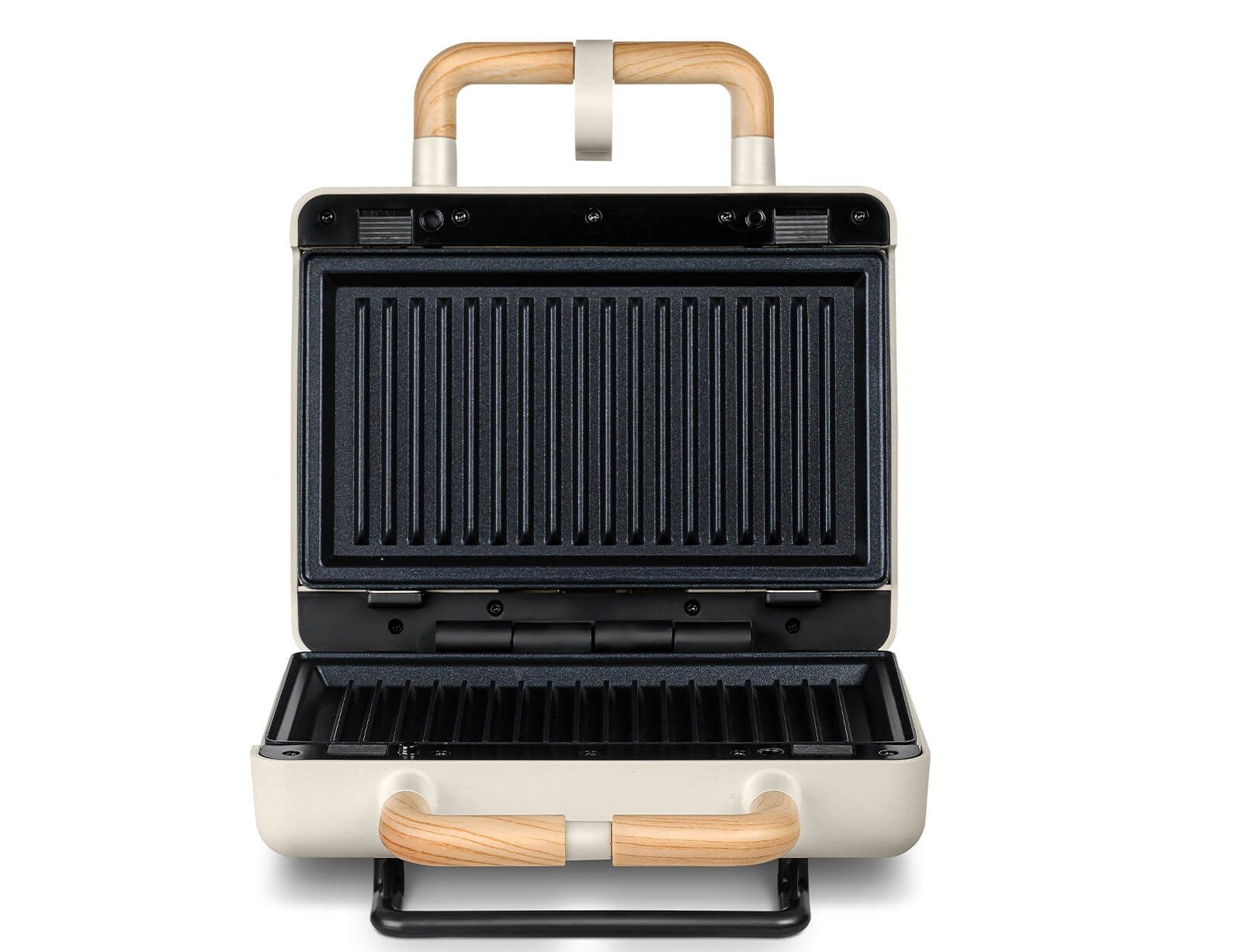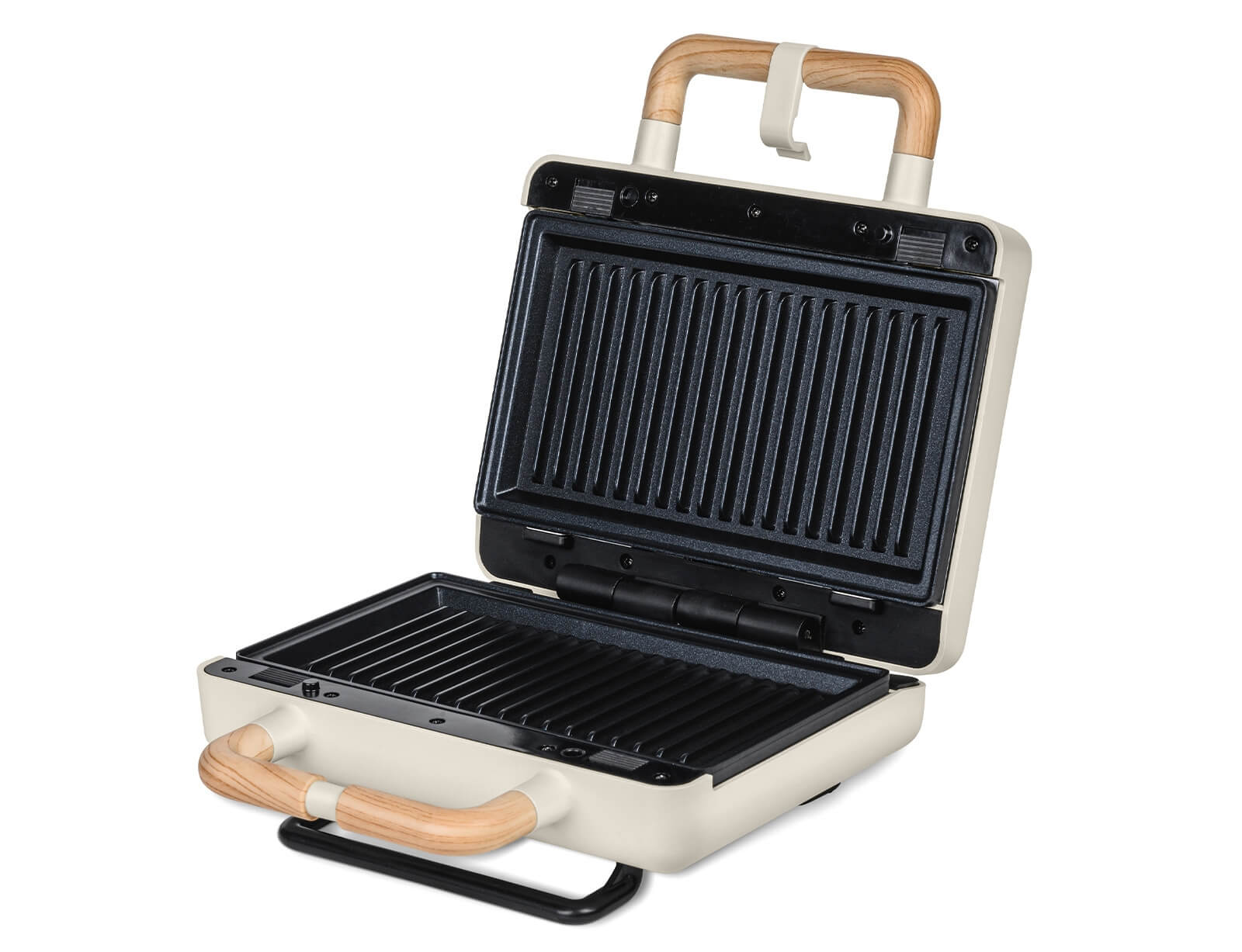 Η συσκευή σας συνδυάζει κομψό design με μέγιστη ασφάλεια και άνεση. Το κλείδωμα ασφαλείας κρατά τις πλάκες σταθερές ενώ ψήνετε, αποτρέποντας απρόοπτα ανοίγματα, ενώ η εργονομική αντιθερμική χειρολαβή προσφέρει άνετο κράτημα ακόμα και όταν η συσκευή είναι ζεστή. Έτσι, κάθε χρήση γίνεται πρακτική και σίγουρη, μετατρέποντας το καθημερινό ψήσιμο σε μια απολαυστική, ασφαλή εμπειρία για όλη την οικογένεια.