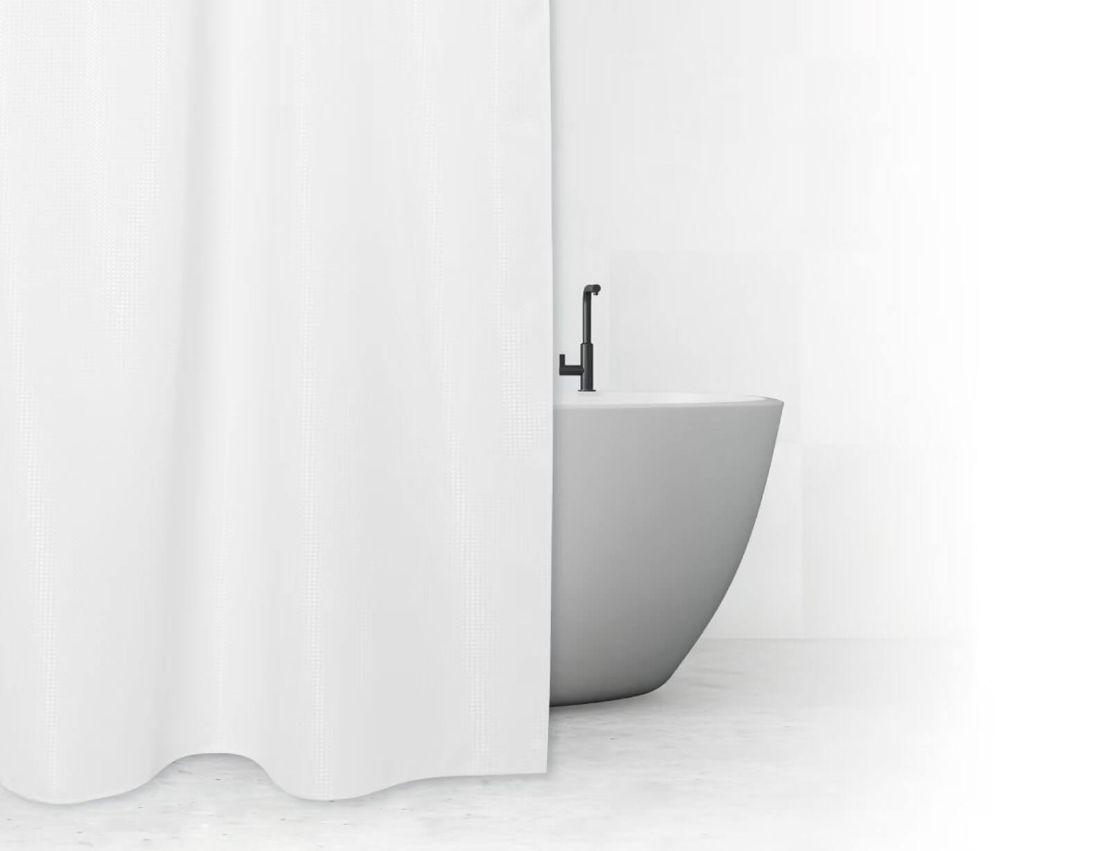 Κουρτίνα μπάνιου από την εταιρεία 5five που προστατεύει το μπάνιο σας διατηρώντας το καθαρό και στεγνό, ενώ παράλληλα θα δώσει και μια ευχάριστη πινελιά. Είναι κατασκευασμένη από 100% πολυεστερικό αδιαβροχοποιημένο ύφασμα, με μεγάλη διάρκεια στο χρόνο. Η κουρτίνα θα πρέπει να καθαρίζεται συχνά ώστε να απομακρύνονται μύκητες και μούχλα, ενώ όταν δείτε ότι έχει αρχίσει να κιτρινίζει ή μαυρίζει από τα υπολείμματα σαπουνιού καλό θα είναι να αντικαθίσταται. Στη συσκευασία περιλαμβάνονται κρίκοι για κρέμασμα.