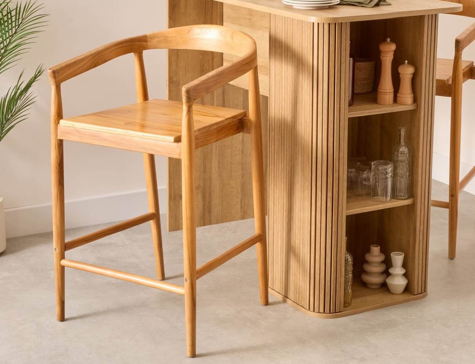 Το σκαμπό μπαρ Miyako από την Atmosphera αποτελεί μια εκλεπτυσμένη επιλογή που συνδυάζει τη φυσική ομορφιά του μασίφ ξύλου teak με τη minimal αισθητική. Οι καθαρές γραμμές και η καμπύλη πλάτη προσφέρουν εργονομία και άνεση, ενώ παράλληλα δημιουργούν μια αίσθηση ηρεμίας και ισορροπίας στον χώρο. Το ενσωματωμένο υποπόδιο ενισχύει τη σταθερότητα και προσφέρει επιπλέον άνεση. Κατασκευασμένο από ανθεκτικό teak, ένα ξύλο γνωστό για τη μεγάλη του διάρκεια ζωής και την αντοχή του στην υγρασία και τη φθορά.