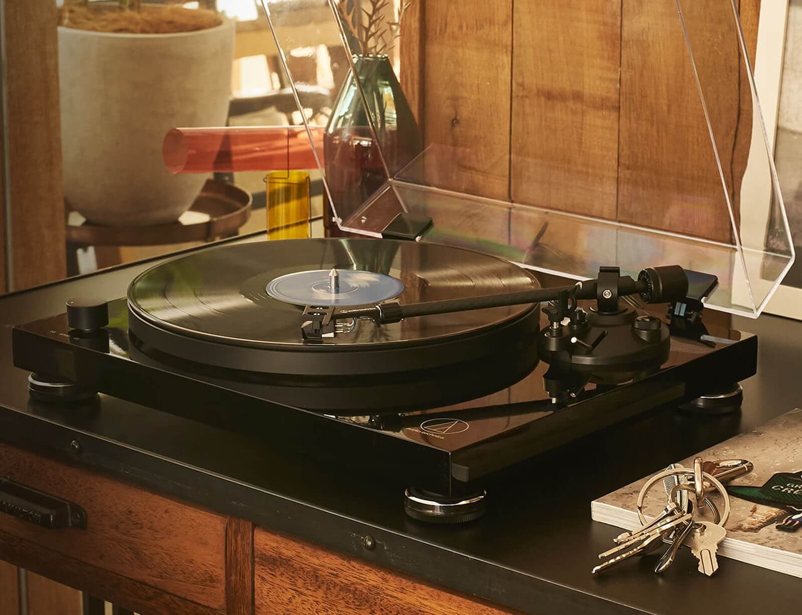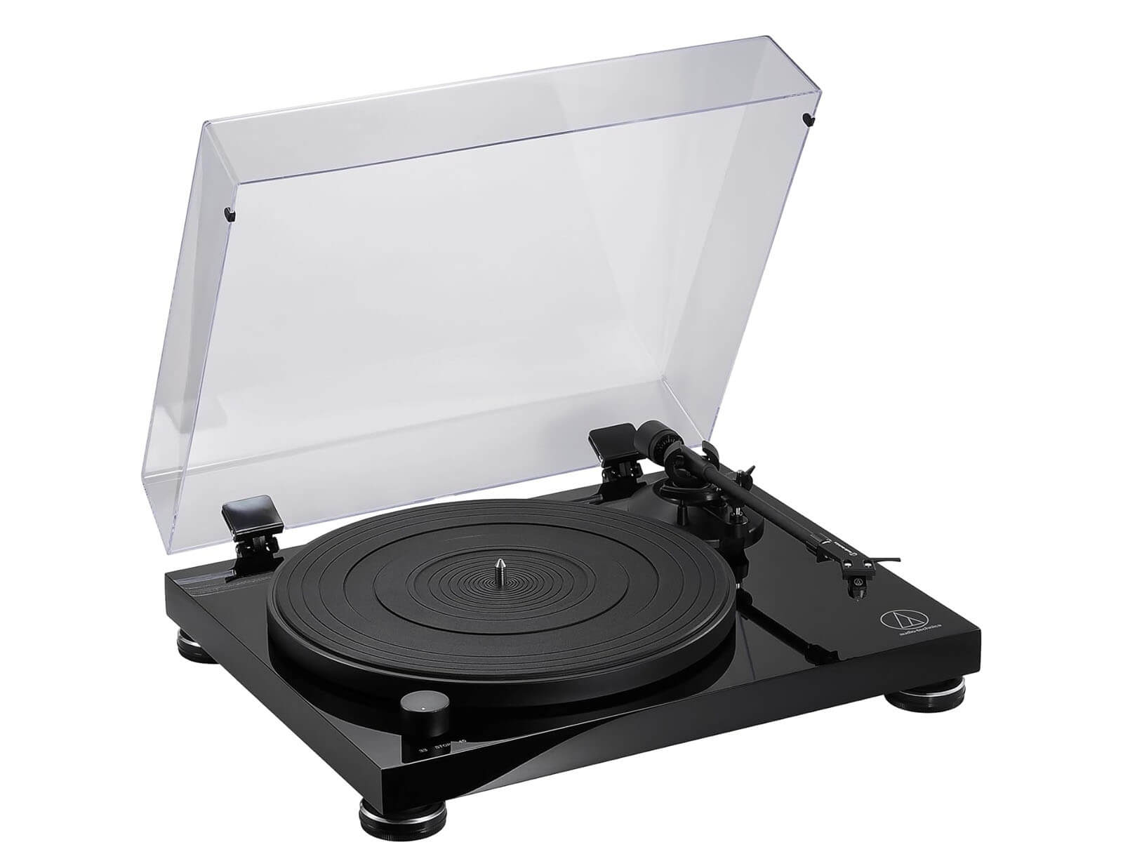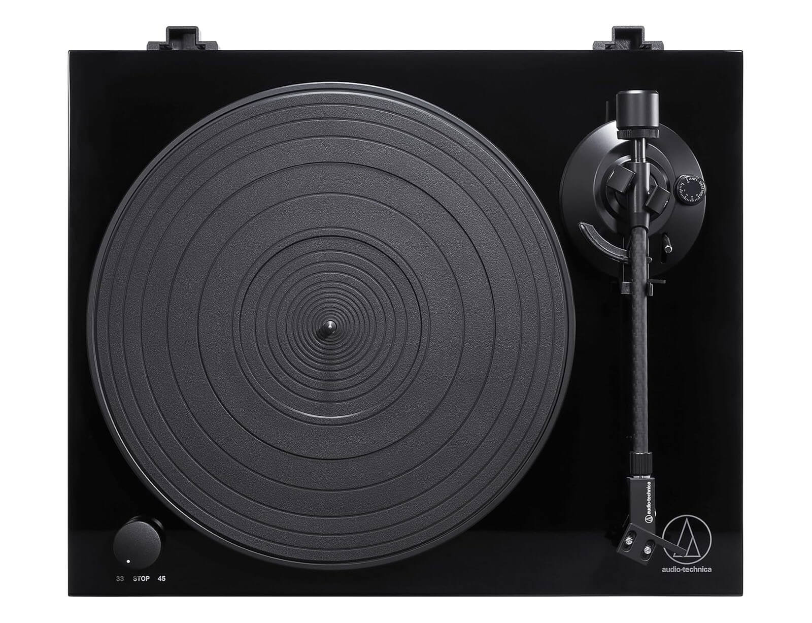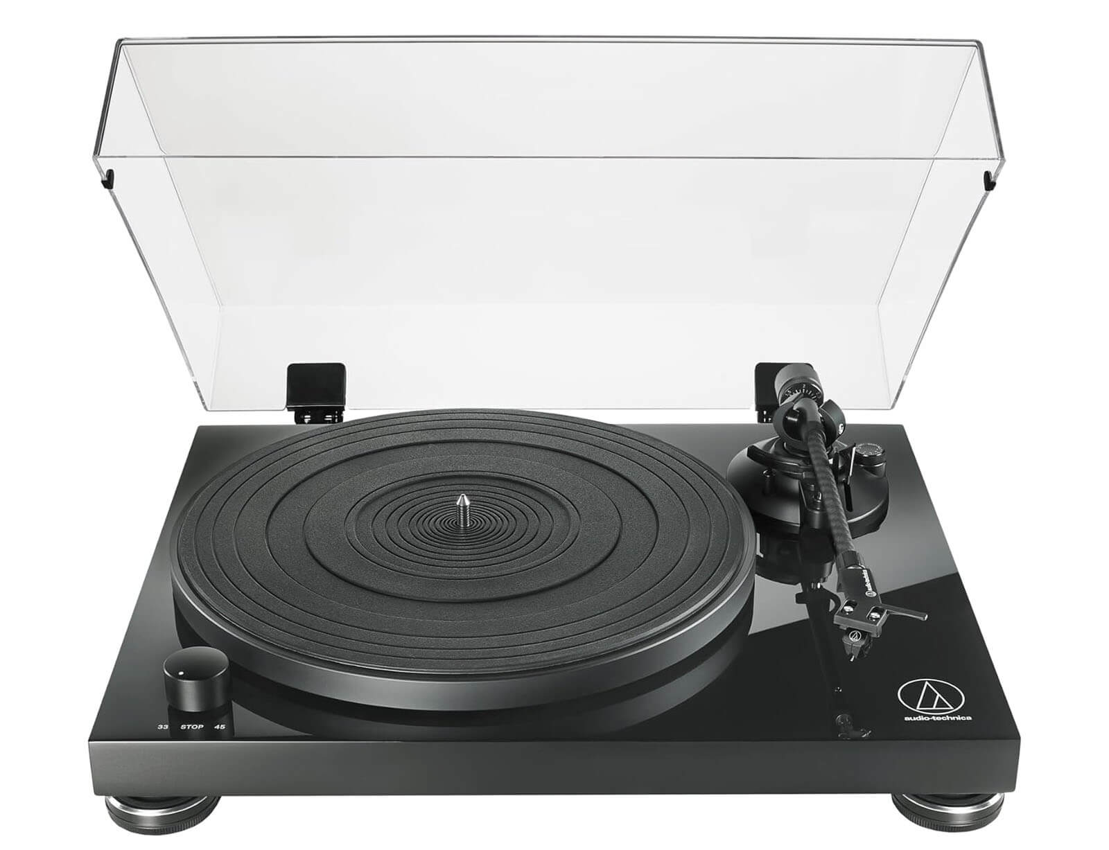 Με το γυαλιστερό, μαύρο φινίρισμα πιάνου της βάσης αντι-συντονισμού, το AT-LPW50PB προσφέρει κομψό, μοντέρνο στυλ που ταιριάζει με την κορυφαία ακρίβεια του κινητήρα που παρακολουθείται από αισθητήρες.