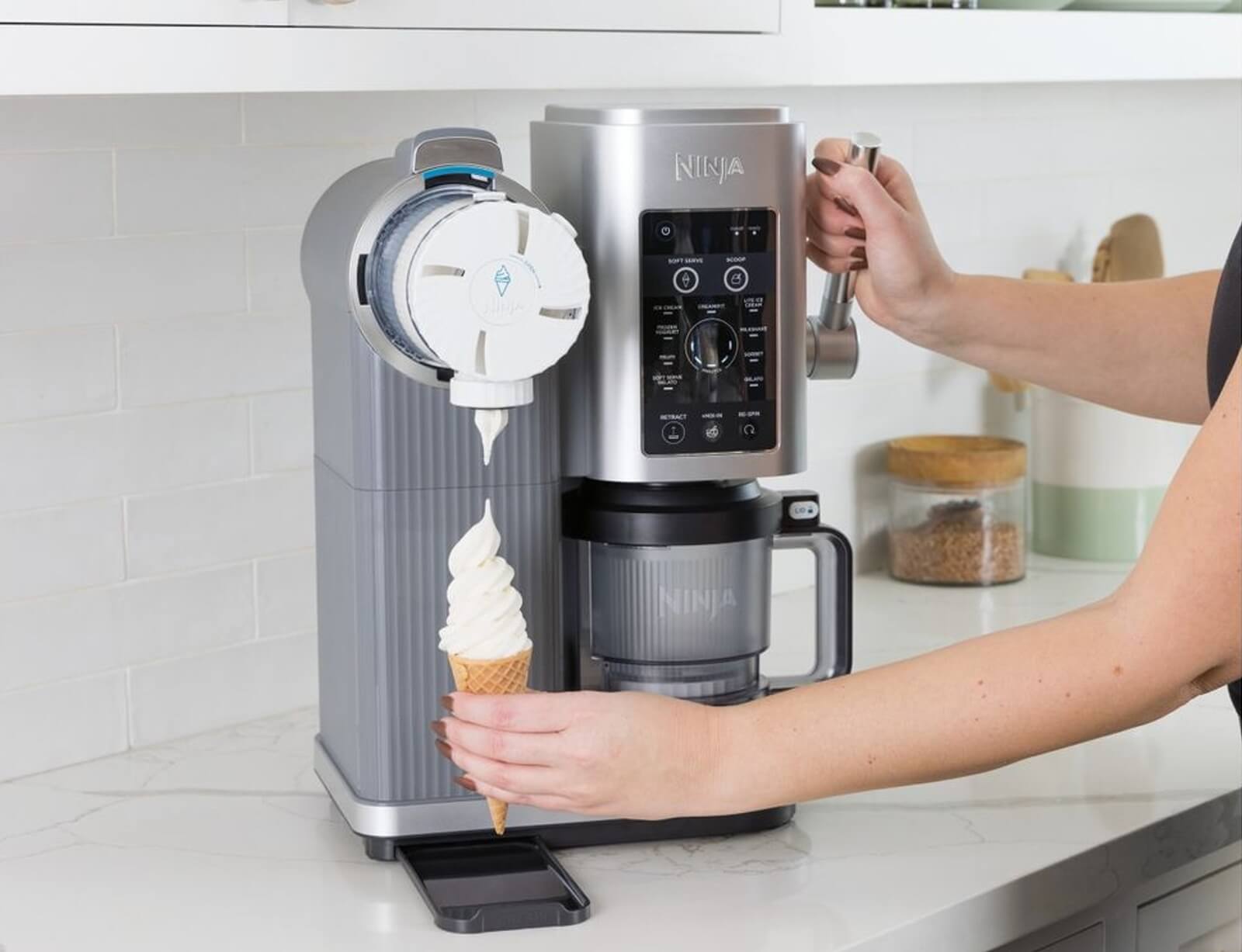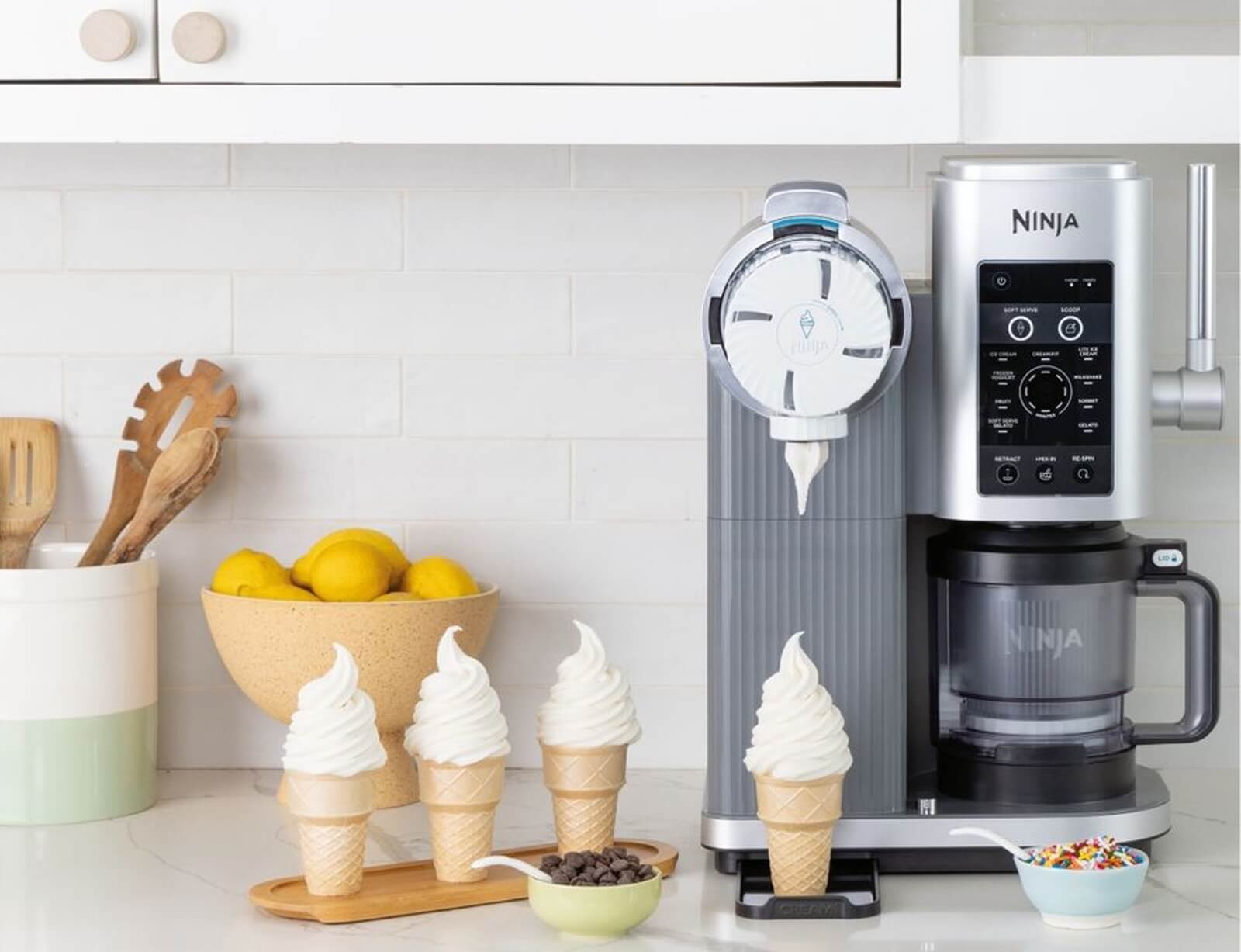 Η νέα μηχανή παγωτού Ninja CREAMi Scoop & Swirl 13 σε 1 για soft serve και παγωτό. Με την τεχνολογία Soft Serve Creamify , μπορείτε να μετατρέψετε σχεδόν οτιδήποτε σε παγωτό, soft serve και πολλά άλλα. Απλώς καταψύξτε τα υλικά για 24 ώρες, επιλέξτε την επιθυμητή λειτουργία, ξεκινήστε τη διαδικασία και απολαύστε!
