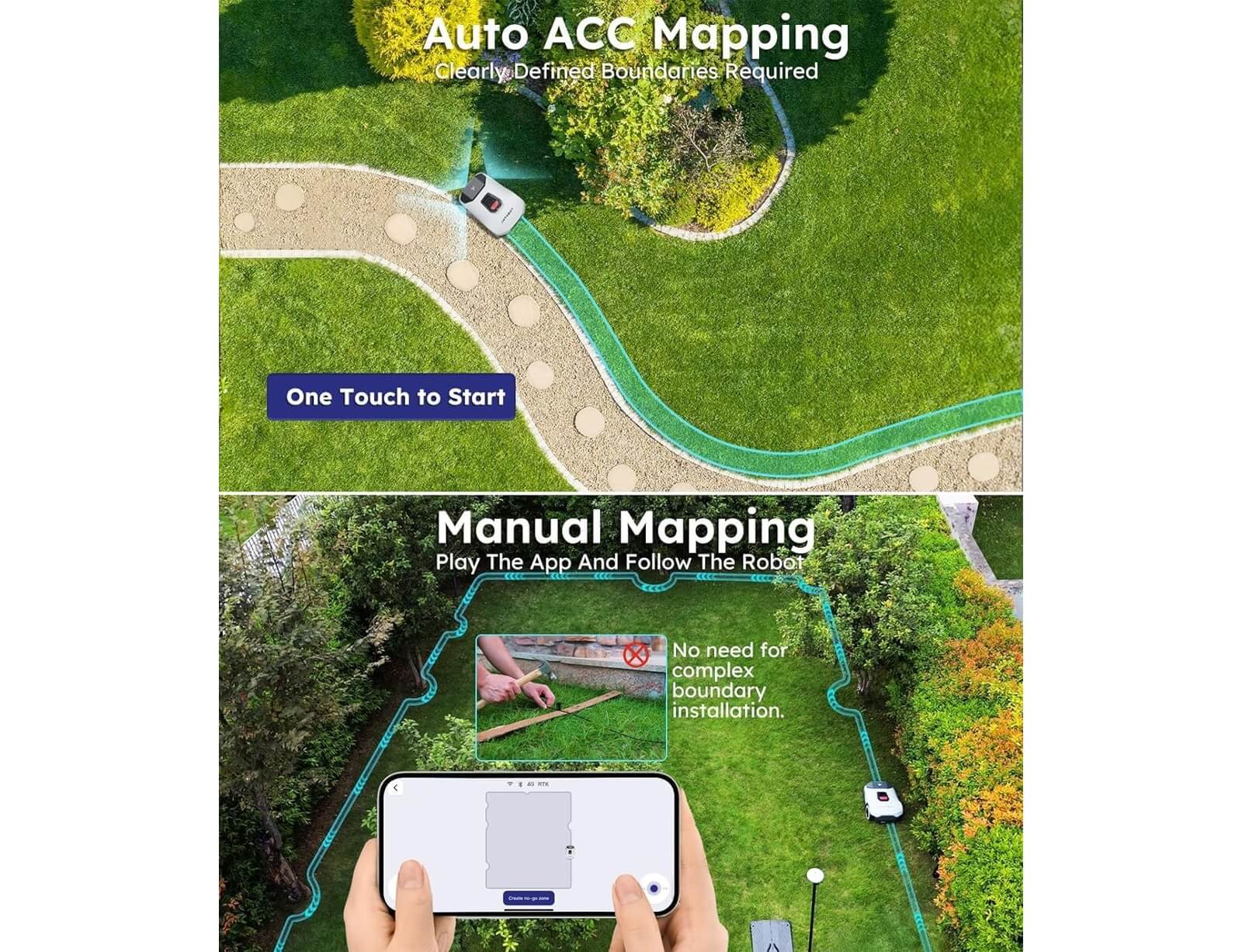 - Χαρτογράφηση με ένα κλικ – δεν απαιτείται καλώδιο οριοθέτησης