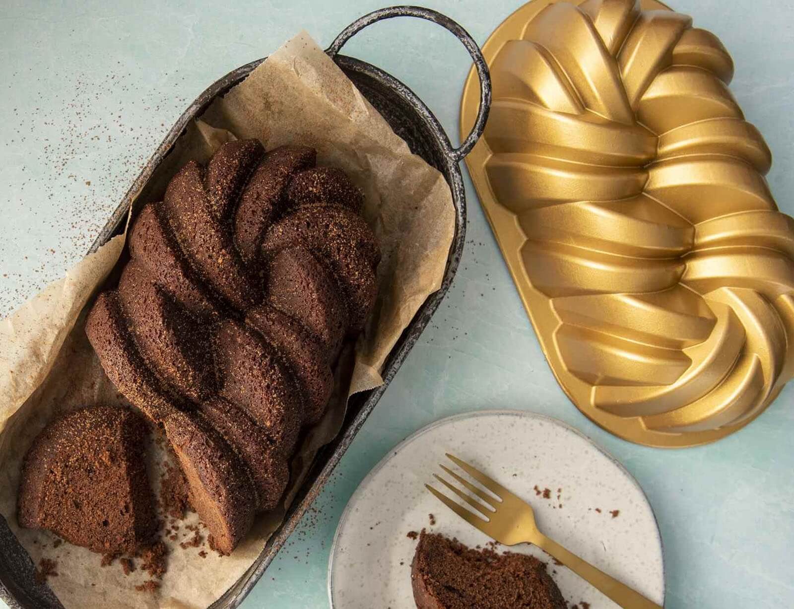 Φόρμα για κέικ Nordic Ware Premier Gold σε σχήμα πλεξούδας, με τρύπα και διαστάσεις 26x15.5x7.5cm