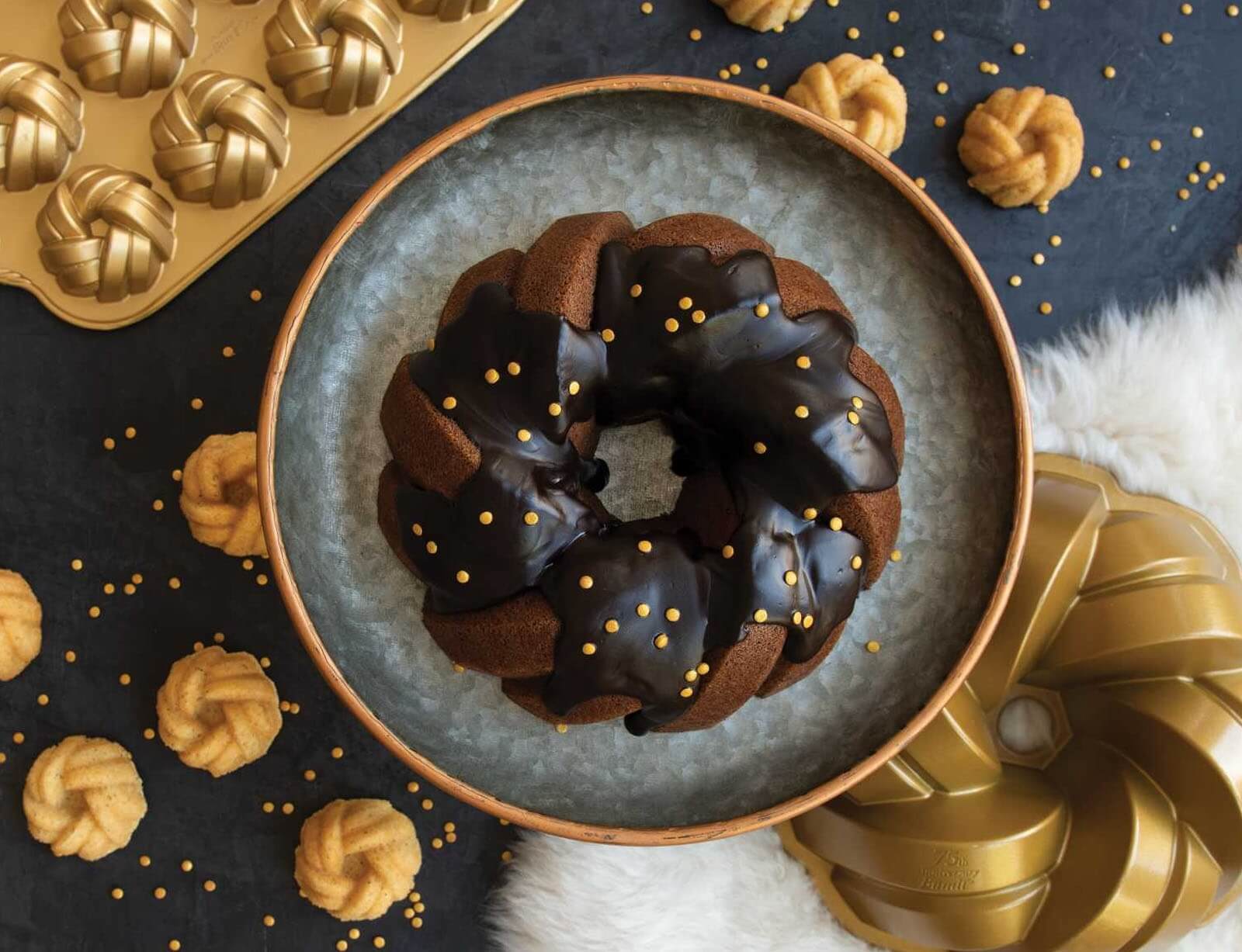 Φόρμα για κέικ Nordic Ware Premier Gold σε πλεκτό σχήμα, με τρύπα και διαστάσεις 27.5x10.5cm