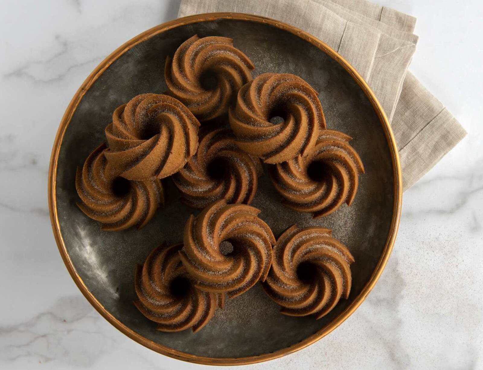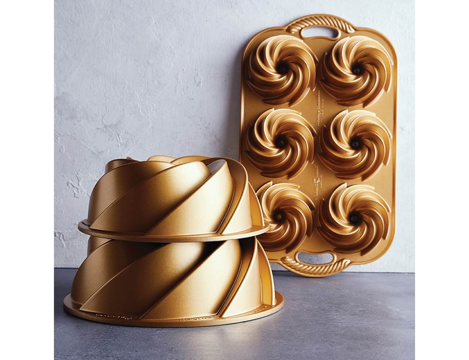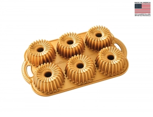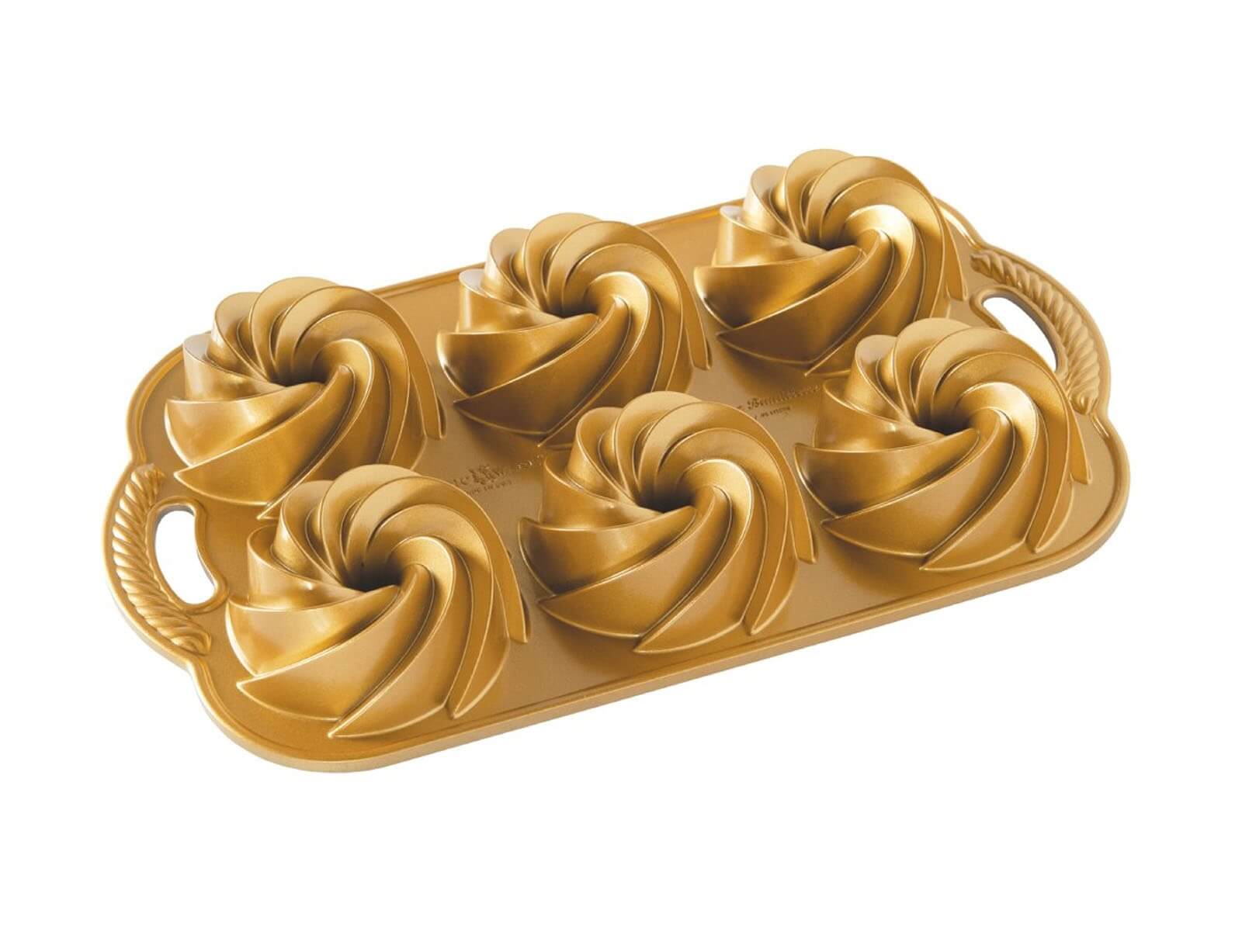 Φόρμα για 6 μικρά κέικ Heritage Nordic Ware Premier Gold με τρύπα και διαστάσεις 38x22.5x4.5cm