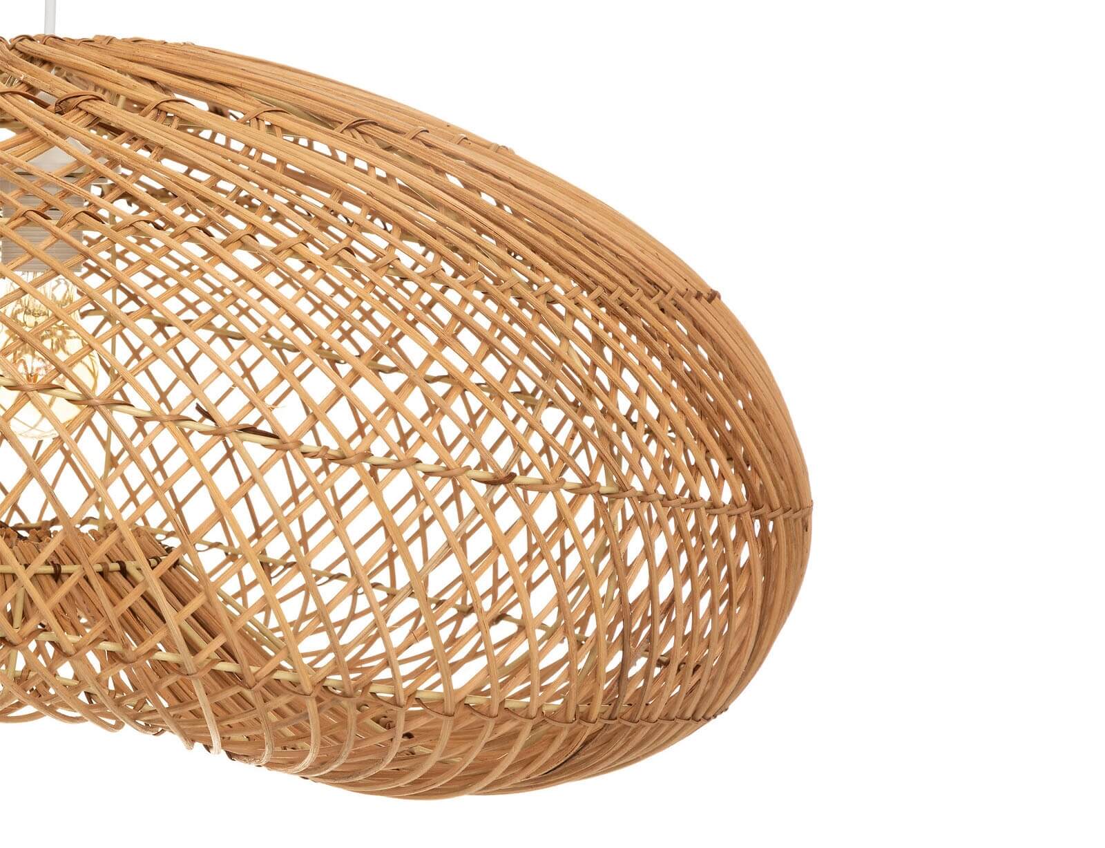 Μονόφωτο κρεμαστό φωτιστικό σε μοντέρνο boho στυλ, κατασκευασμένο από rattan, ιδανικό για την τραπεζαρία, το σαλόνι ή το υπνοδωμάτιο, εισάγοντας μια μοναδική ατμόσφαιρα. Ο φυσικός σχεδιασμός κάνει τη λάμπα να προσθέτει ζεστασιά και άνεση στο δωμάτιο.  Το διαθέσιμο καλώδιο είναι κατασκευασμένο από PVC με μήκος 80εκ., παρέχοντας την δυνατότητα αυξομείωσης του συνολικού ύψους του φωτιστικού.