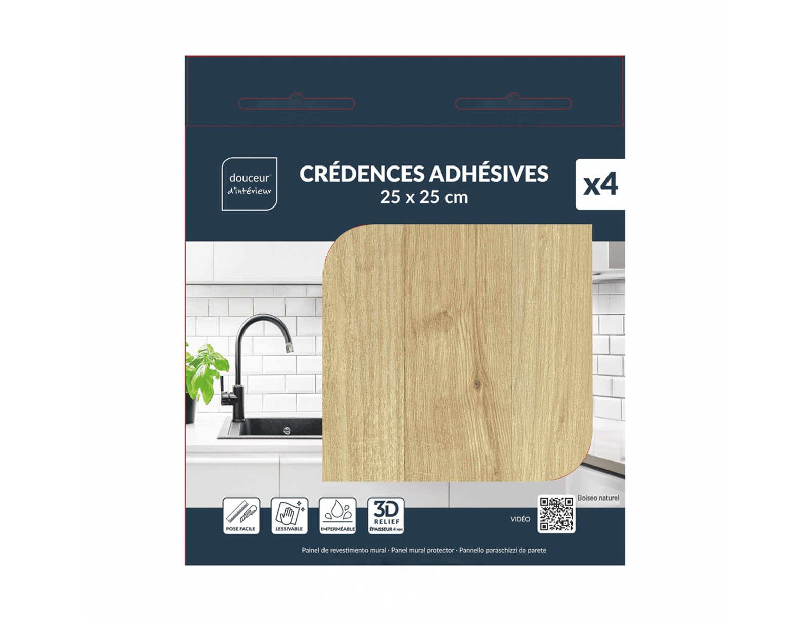 Αυτοκόλλητα Πλακάκια με Όψη Ξύλου Boiseo Douceur d'intérieur με διαστάσεις 25x25cm - Natural - 4 τεμάχια