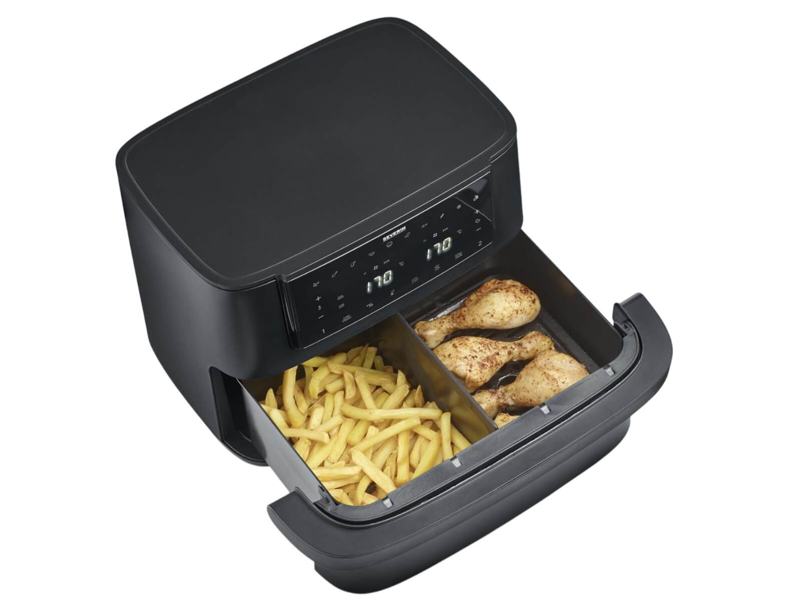 Φριτέζα αέρος Severin 2490 με με 2 ανεξάρτητες ζώνες μαγειρέματος, ισχύ 2600W και χωρητικότητα 9L - Black