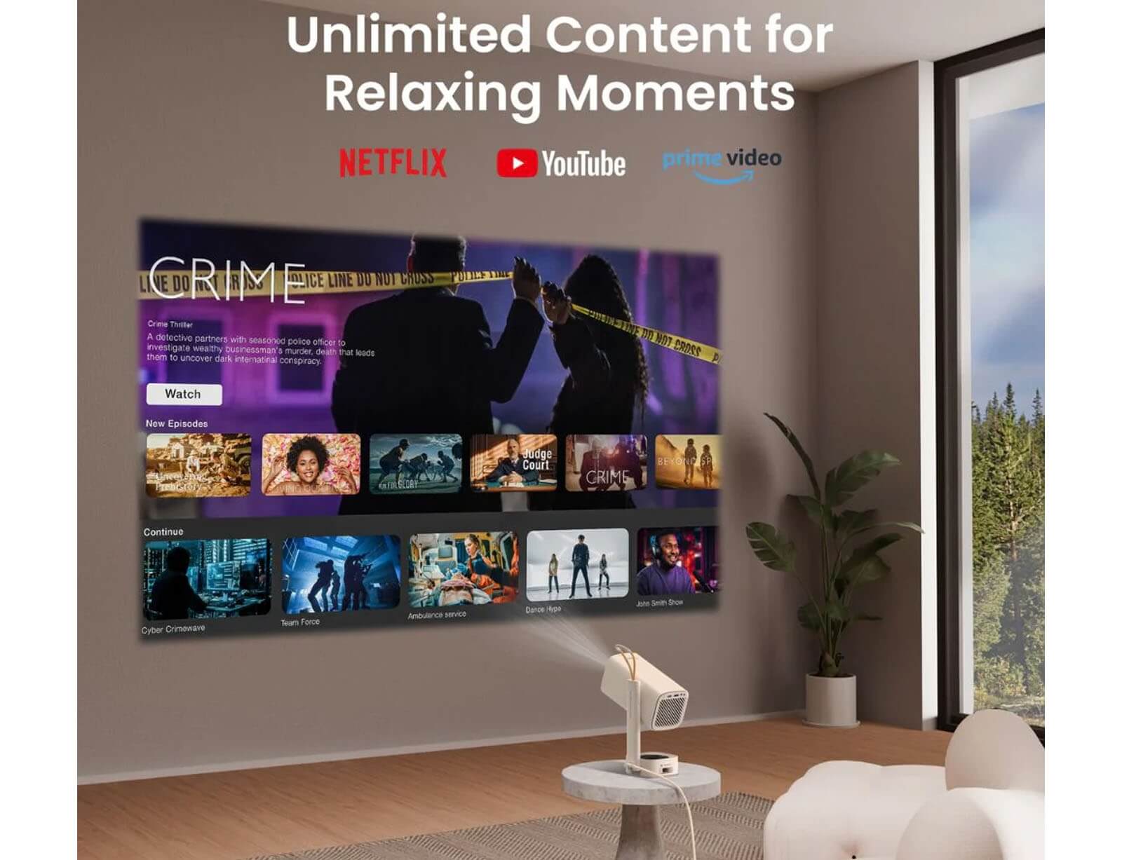 Φορητός Προτζέκτορας Yaber T1 Pro με ανάλυση Full HD και ισχύ ηχείων 8W - WiFi, Bluetooth, HDMI, USB - Ενσωματωμένο Netflix / YouTube / Prime Video