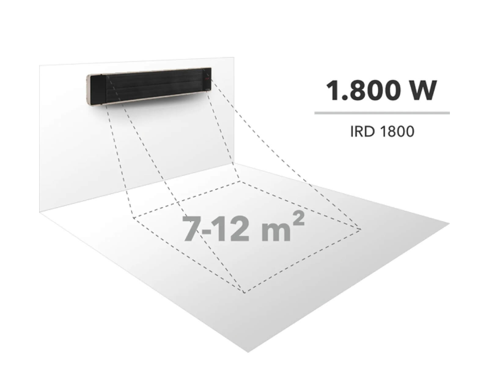 Ο IRD 1800 εκπέμπει την ακτινοβολούμενη ενέργειά του στο φάσμα μεσαίων και μεγάλων κυμάτων υπέρυθρου φωτός και εξαιτίας αυτού επιτυγχάνει ομοιόμορφη και ακριβή κατανομή θερμότητας χωρίς να προθερμαίνει το περιβάλλον. Έτσι η συσκευή είναι ιδανικά κατάλληλη για παράδειγμα για περιοχές προστατευμένες από άνεμο όπως βεράντες, μπαλκόνια, εξωτερικούς χώρους γαστρονομίας καθώς.
