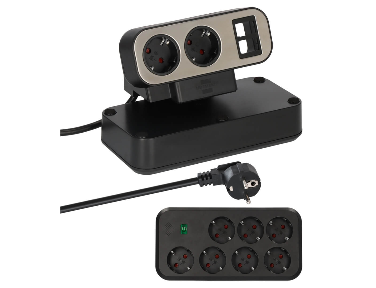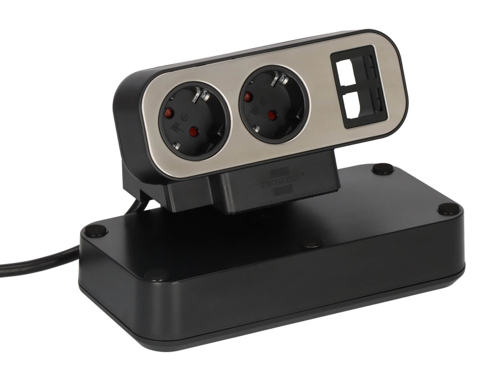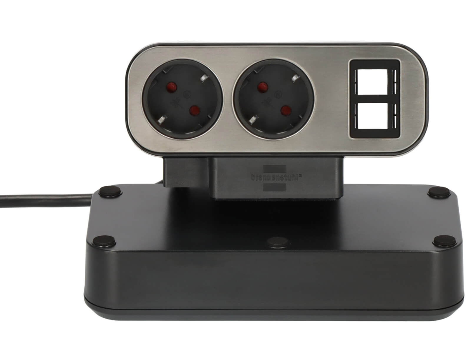 Το πολύπριζο brennenstuhl®estilo με διπολικό διακόπτη και επιφάνεια από ανοξείδωτο χάλυβα υψηλής ποιότητας φέρνει τάξη στο σπίτι σας. Διαθέτει προστασία από υπερτάσεις, η οποία προστατεύει τις συσκευές σας από διαταραχές στο ηλεκτρικό δίκτυο, όπως υπερτάσεις, έμμεσα χτυπήματα κεραυνού ή θόρυβο γραμμής, με μέγιστο άθροισμα ρευμάτων διαρροής έως 19.500A. Η λυχνία ελέγχου λειτουργίας καθώς και το ηχητικό προειδοποιητικό σήμα σε περίπτωση βλάβης της προστασίας από υπερτάσεις προσφέρουν πρόσθετη προστασία. Μπορεί να προσαρμοστεί σε πάχη τραπεζιού 16-45 mm και τα αντιολισθητικά μαξιλαράκια παρέχουν σταθερότητα. Έχει 2 υποδοχές πρίζας πάνω από το τραπέζι καθώς και 2 υποδοχές για μονάδες Keystone. Με την αντίστοιχη μονάδα Keystone, μπορείτε να ενσωματώσετε τη σύνδεση που χρειάζεστε στην ταινία πρίζας χωρίς εργαλεία, προσφέροντας υψηλό βαθμό ευελιξίας σύνδεσης. Επιπλέον 7 υποδοχές πρίζας είναι διαθέσιμες στην κάτω πλευρά για να διατηρείται ο σταθμός εργασίας καθαρός και τακτοποιημένος.