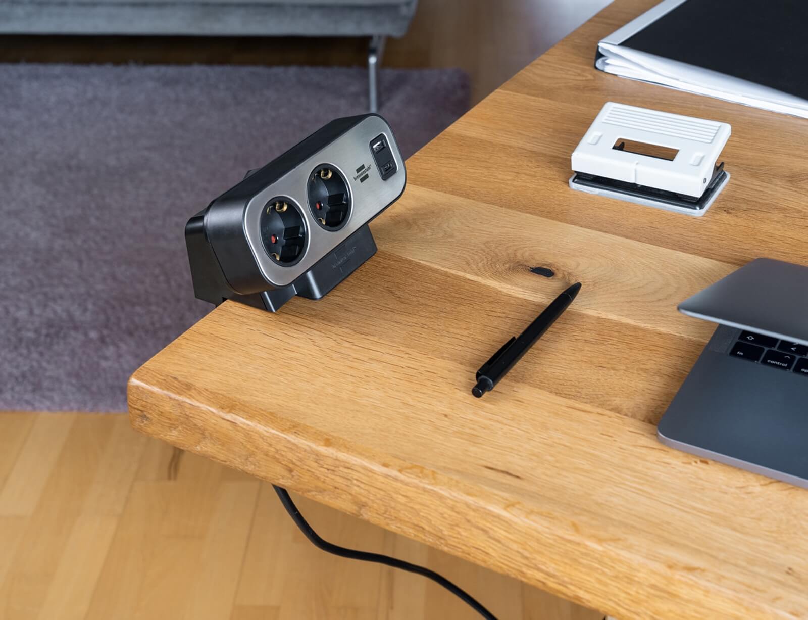 - Η μονάδα επιφάνειας εργασίας διαθέτει 2 υποδοχές πρίζας + 1 USB C 30W max και 1 USB Α 18W max