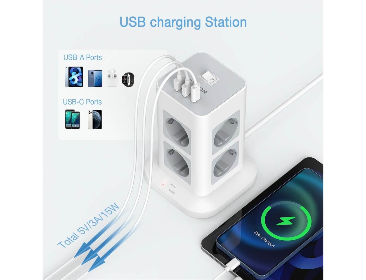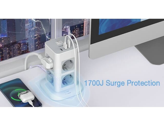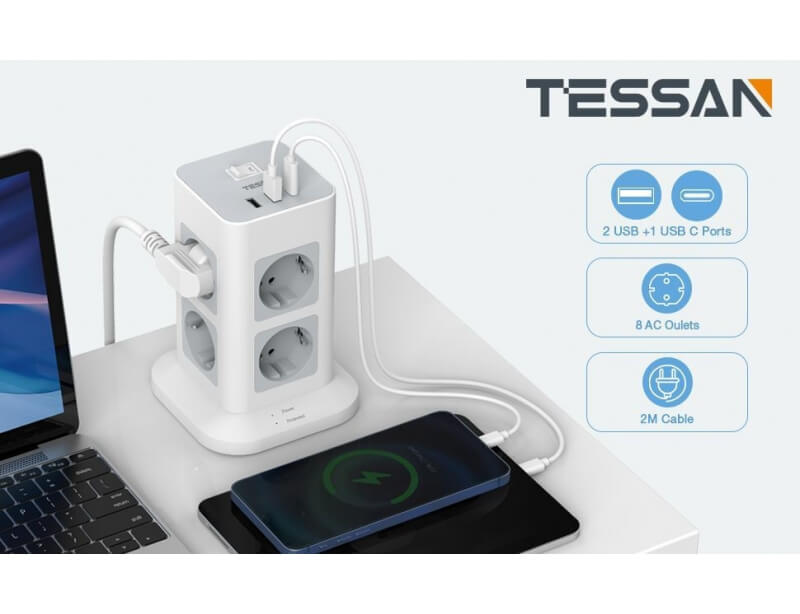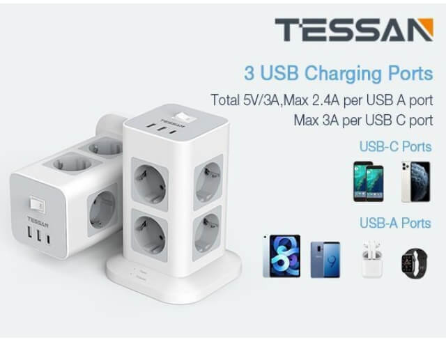 - 8 πρίζες AC και 2 θύρες USB και 1 θύρα USB C