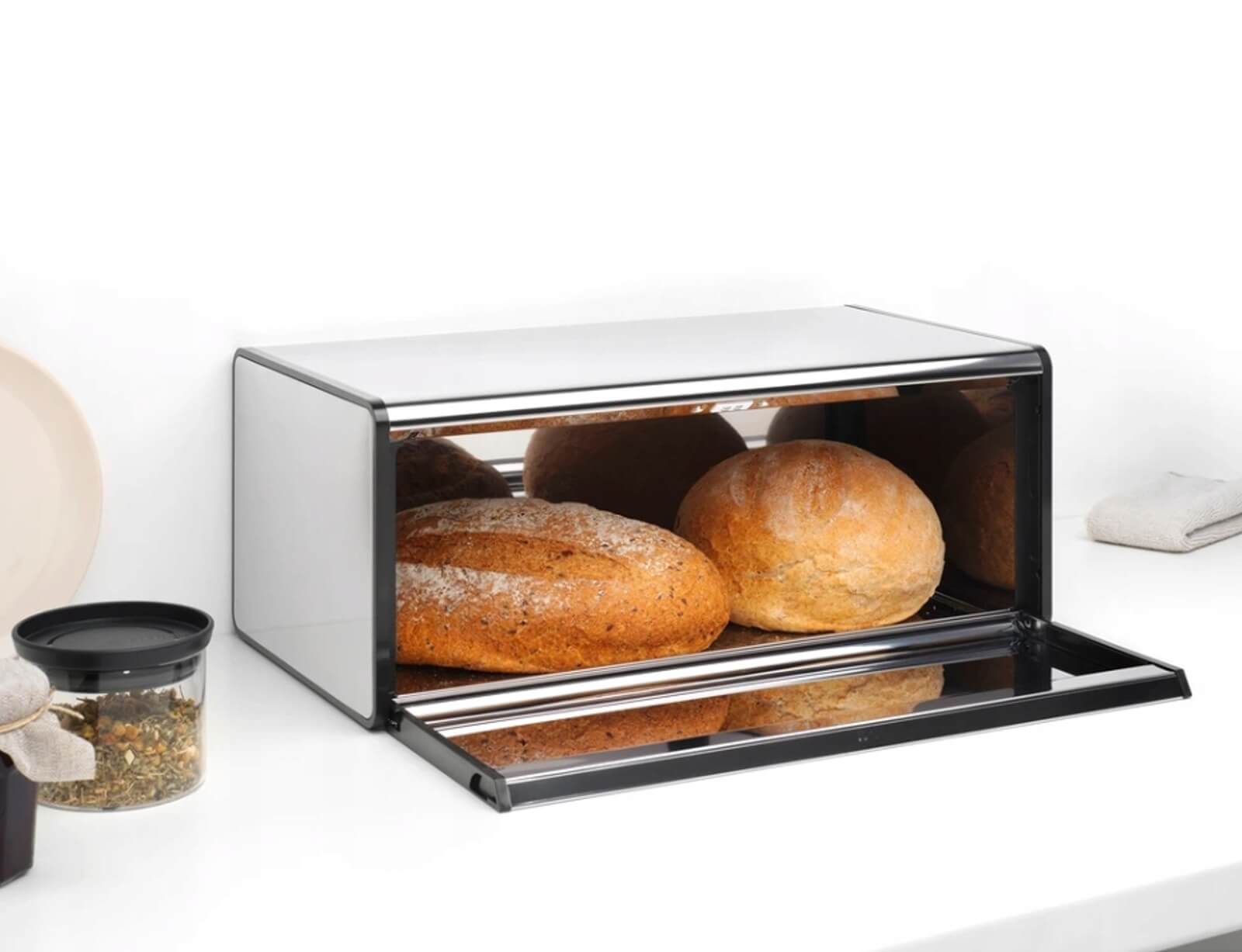 Η ψωμιέρα της εταιρείας Brabantia, θα σας βοηθήσει να αποθηκεύετε το ψωμί σας και να το διατηρείτε φρέσκο για περισσότερο καιρό. Διαθέτει καπάκι ώστε να κλείνει και να εμποδίζει την άμεση επαφή του ψωμιού με τον αέρα, επιμηκύνοντας έτσι τη ζωή του, αφού το ψωμί όταν έρχεται σε επαφή με τον αέρα έχει την τάση να χαλάει πιο γρήγορα. Έχει επίπεδη κορυφή για να τοποθετείτε τα δοχεία σας, το καπάκι έχει μεγάλη λαβή για εύκολο άνοιγμα και μαγνήτη για τέλειο κλείσιμο. Η μεταλλική κατασκευή της, την κάνει ανθεκτική στο χρόνο και τη χρήση. Καθαρίζεται εύκολα και απαιτεί ελάχιστη συντήρηση.