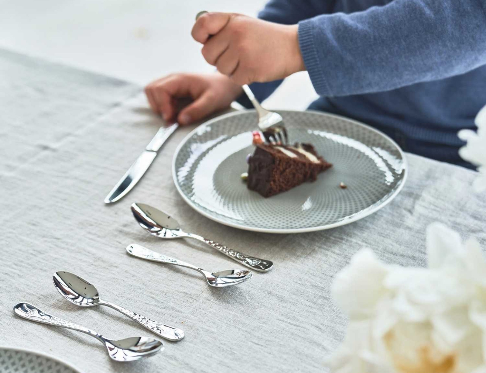 Το παιδικό σετ μαχαιροπίρουνων είναι σχεδιασμένο ειδικά για παιδιά, με εργονομικά διαμορφωμένες λαβές που παρέχουν άνετο κράτημα. Είναι κατασκευασμένο από ανοξείδωτο ατσάλι υψηλής ποιότητας, εξασφαλίζοντας μακροχρόνια χρήση και ανθεκτικότητα, διατηρώντας τη λάμψη του ακόμα και μετά από πολλές χρήσεις.