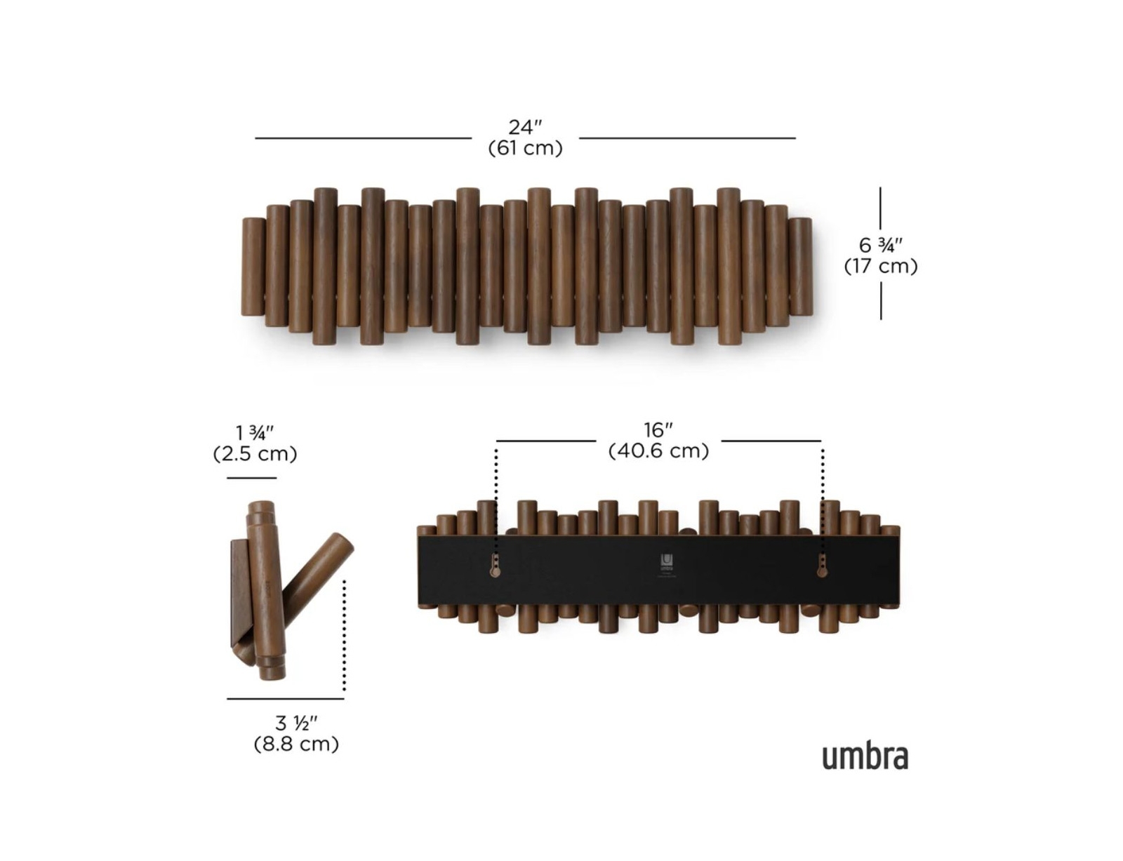 Κρεμάστρα τοίχου Picket Umbra 8 θέσεων με διαστάσεις 61x4x17cm - Καρυδί