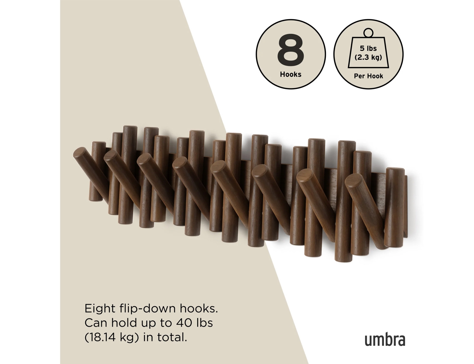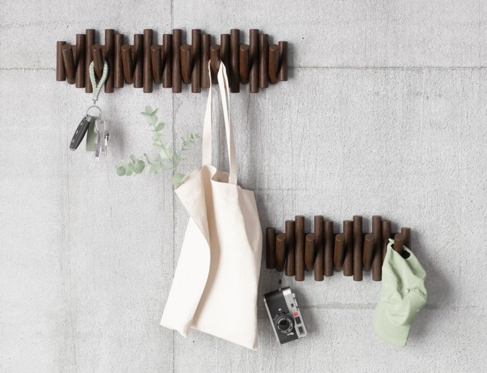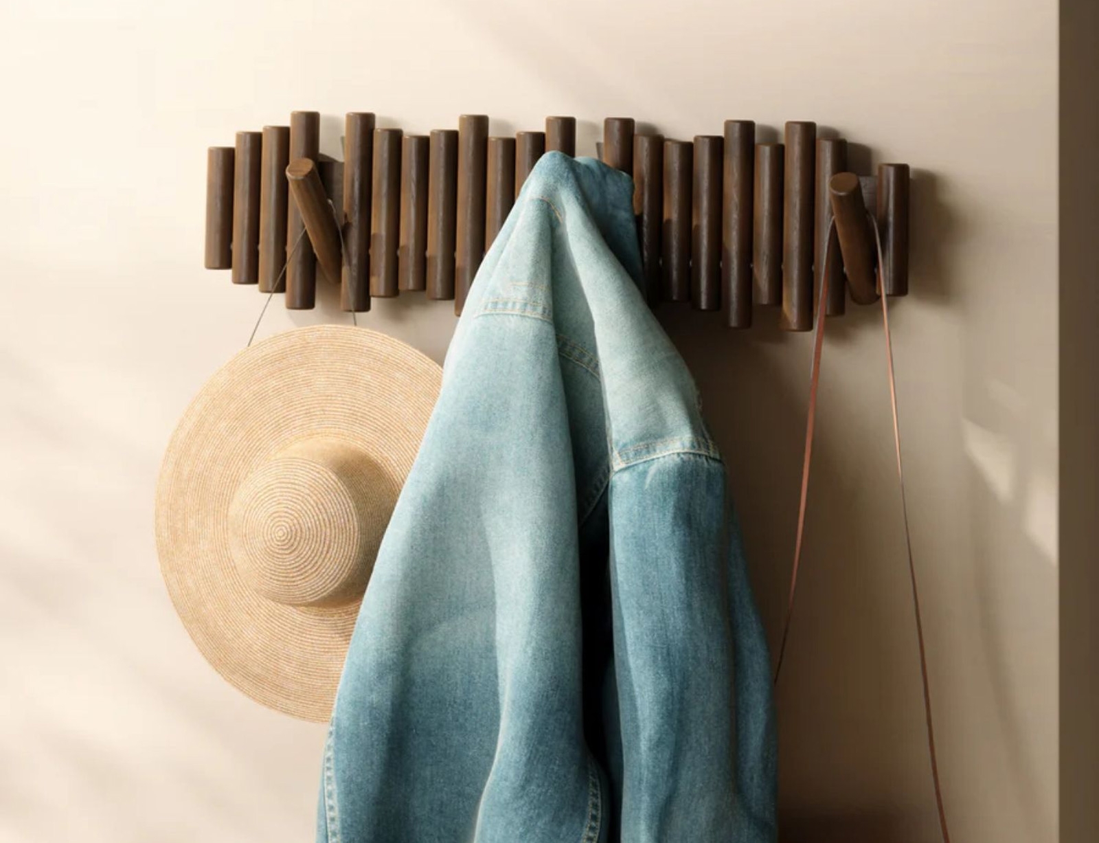 Αναβαθμίστε το σπίτι σας με το κρεμάστρα τοίχου Picket της Umbra, μια εκλεπτυσμένη, λειτουργική πινελιά που λειτουργεί και ως διακοσμητικό. Κατασκευασμένη από λοξοτμημένο ξύλο πεύκου, είναι κάτι περισσότερο από μια απλή κρεμάστρα. Φέρνει ζεστασιά σε κάθε χώρο. Τα πτυσσόμενα γατζάκια του, που το καθένα αντέχει έως και 2,5 κιλά, παρέχουν πρακτική αποθήκευση για παλτά, τσάντες ή κοσμήματα και στη συνέχεια διπλώνουν προς τα πίσω για να διατηρήσουν μια καθαρή, μινιμαλιστική εμφάνιση. Ιδανική για εισόδους, υπνοδωμάτια ή οπουδήποτε χρειάζεστε οργάνωση, ξεχωρίζει για την κατασκευή της. Τοποθετήστε τη για να δημιουργήσετε μια εντυπωσιακή εμφάνιση που αναβαθμίζει τη διακόσμησή σας και μεγιστοποιεί τον αποθηκευτικό χώρο.